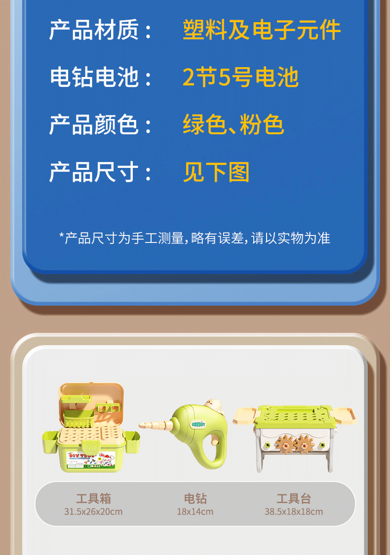 ![]() | [pink] 120-piece assembly tool set + tool table + electric drill + hat + storage box + panel | ¥89.9 / ≈ 1 083 ₽ | 16000 | 6153215574476 | |