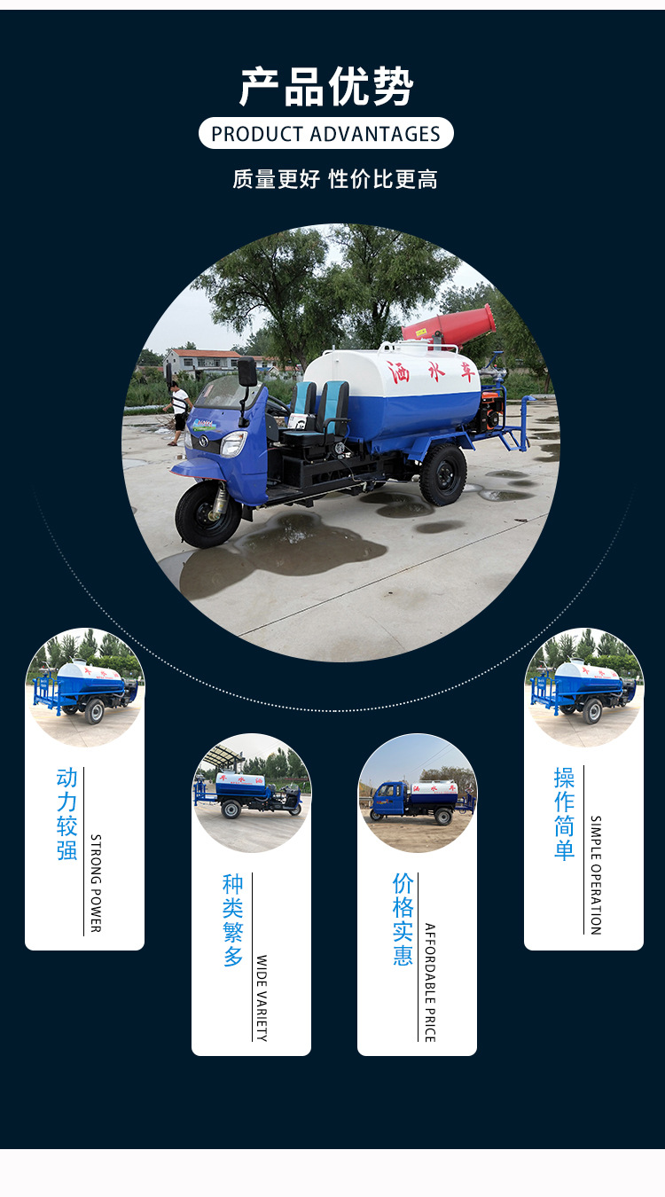 Трехколесный распылитель для снижения пыли на строительных площадках, высоконапорный дорожный очиститель, новый энергийный санитарный и дезинфекционный автомобиль