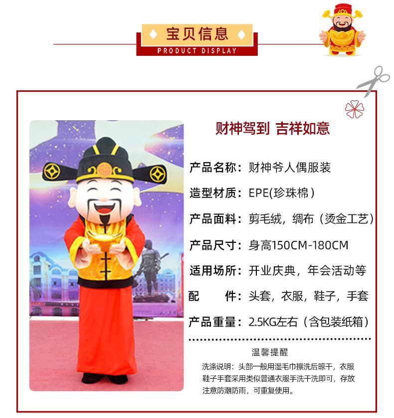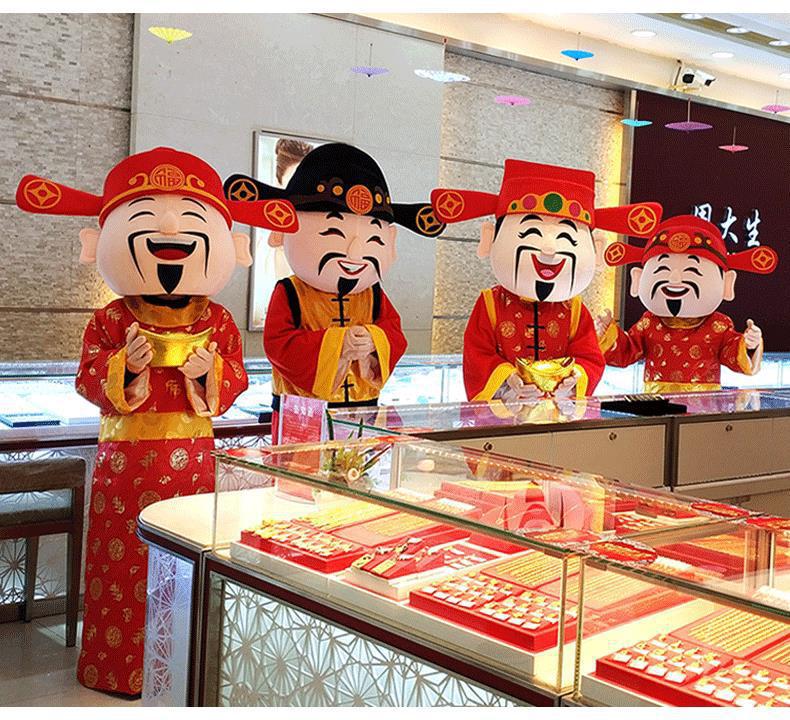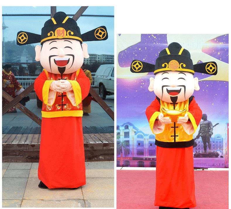 Костюм маскота мультфильма Бога богатства для атмосферы в торговом центре и ресторане, реквизит для праздничных мероприятий на Новый год