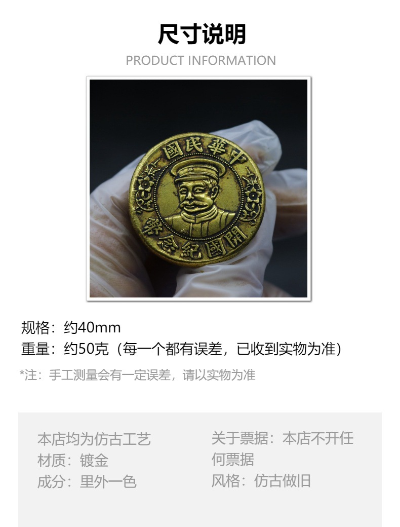 Медаль в честь основания Китайской Республики Ли Юаньхунга, позолоченные антикварные украшения, подарок, портрет на военной форме, утолщенная золотая монета