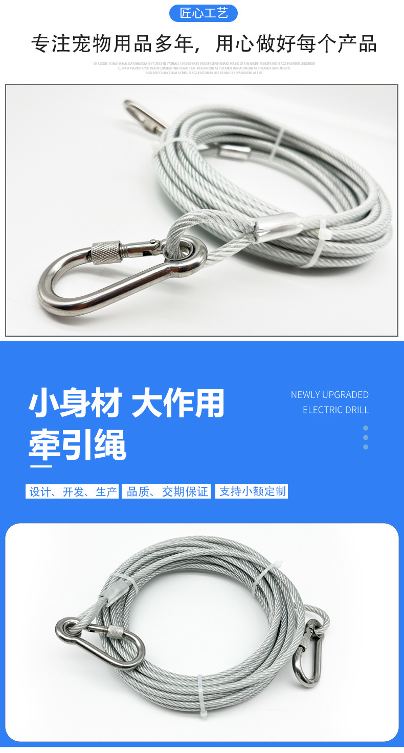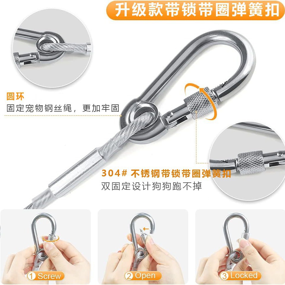 Поводок для собак, поводок для кошек, оцинкованная веревка с вращающимся карабином, уличная противозапутывающая безопасная веревка для крупных собак