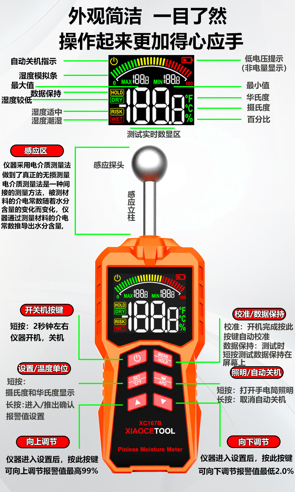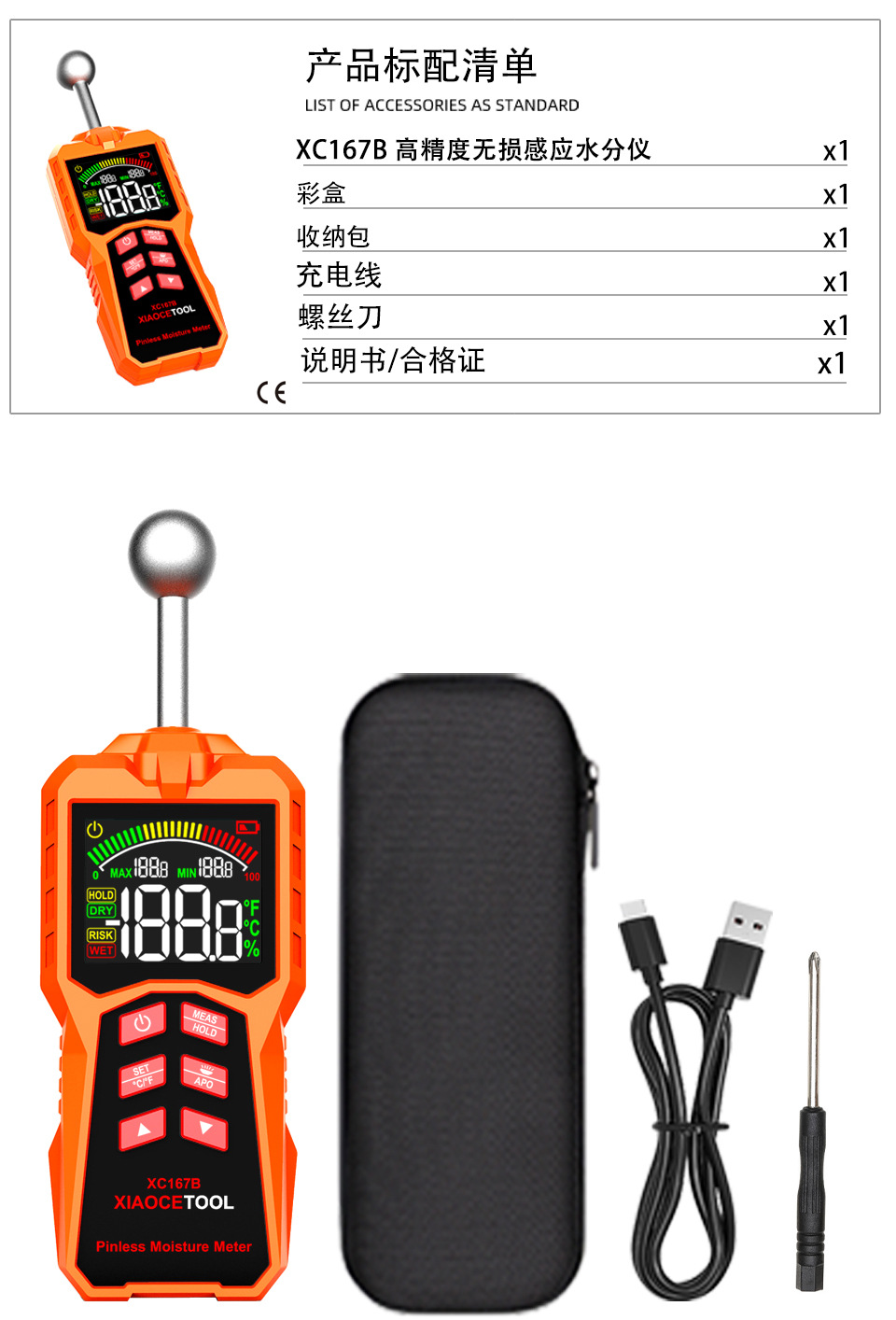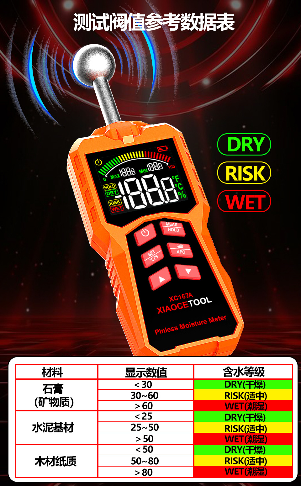 Сенсорный влагомер Xiaocetool для неразрушающего измерения влаги в стенах и полах, высокоточное тестирование содержания влаги