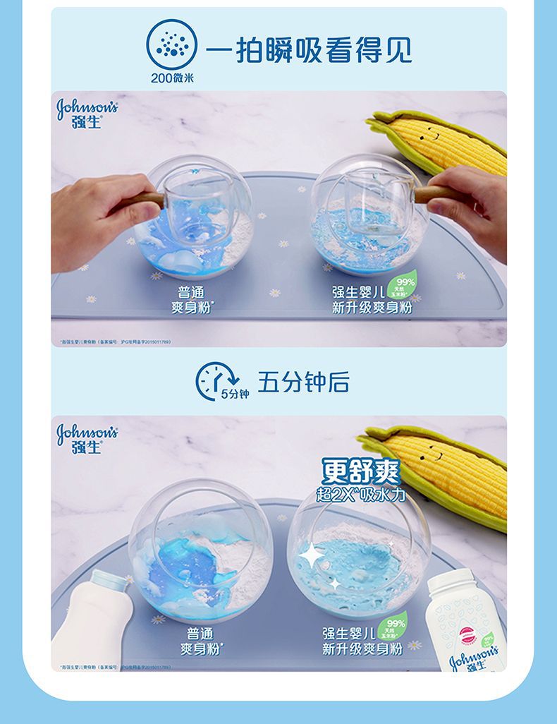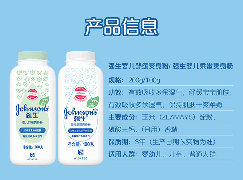 Пудра для младенцев Johnson's 100г охлаждающая и успокаивающая для детей, от потницы, впитывающая пот и удаляющая масло, кукурузная пудра 200г