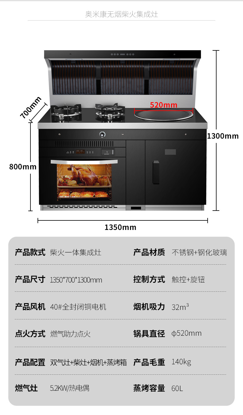 ![]() | 1.35m double gas stove steam oven model (oil fume separation) | ¥6680.0 / ≈ 80 568 ₽ | 500 | 5989074969669 | |