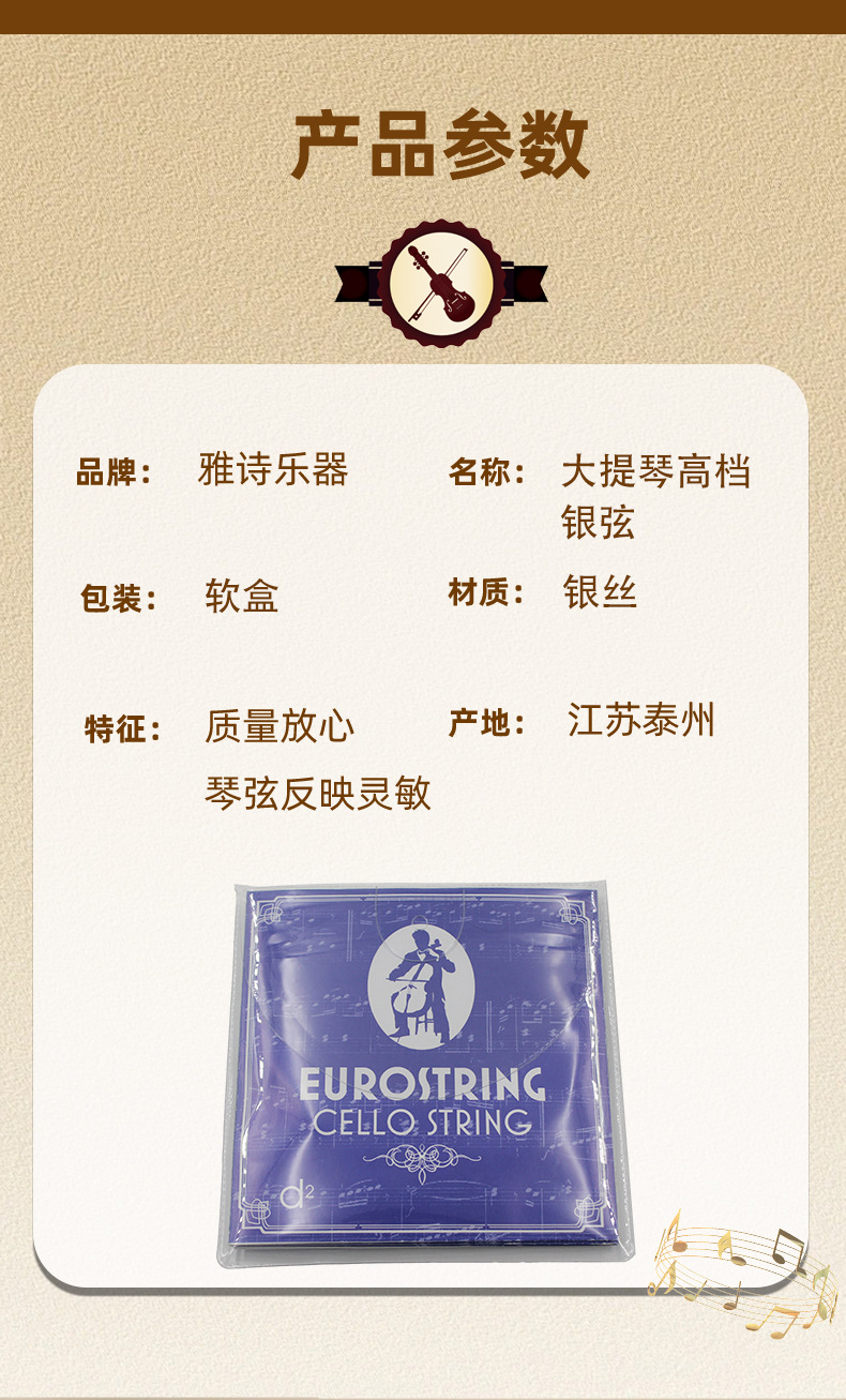 Струны для виолончели высокого класса, серебряная проволока, мягкая коробка, индивидуальная упаковка