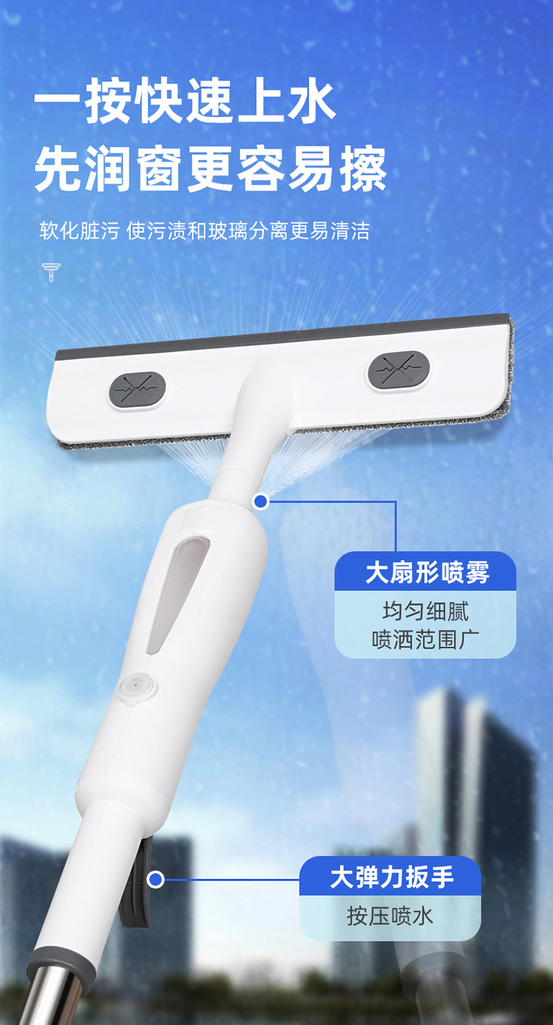 Бытовой распылитель и скребок интегрированный для мытья окон удлиненный двусторонний для высотных зданий стеклянный очиститель зеркал оптовая продажа
