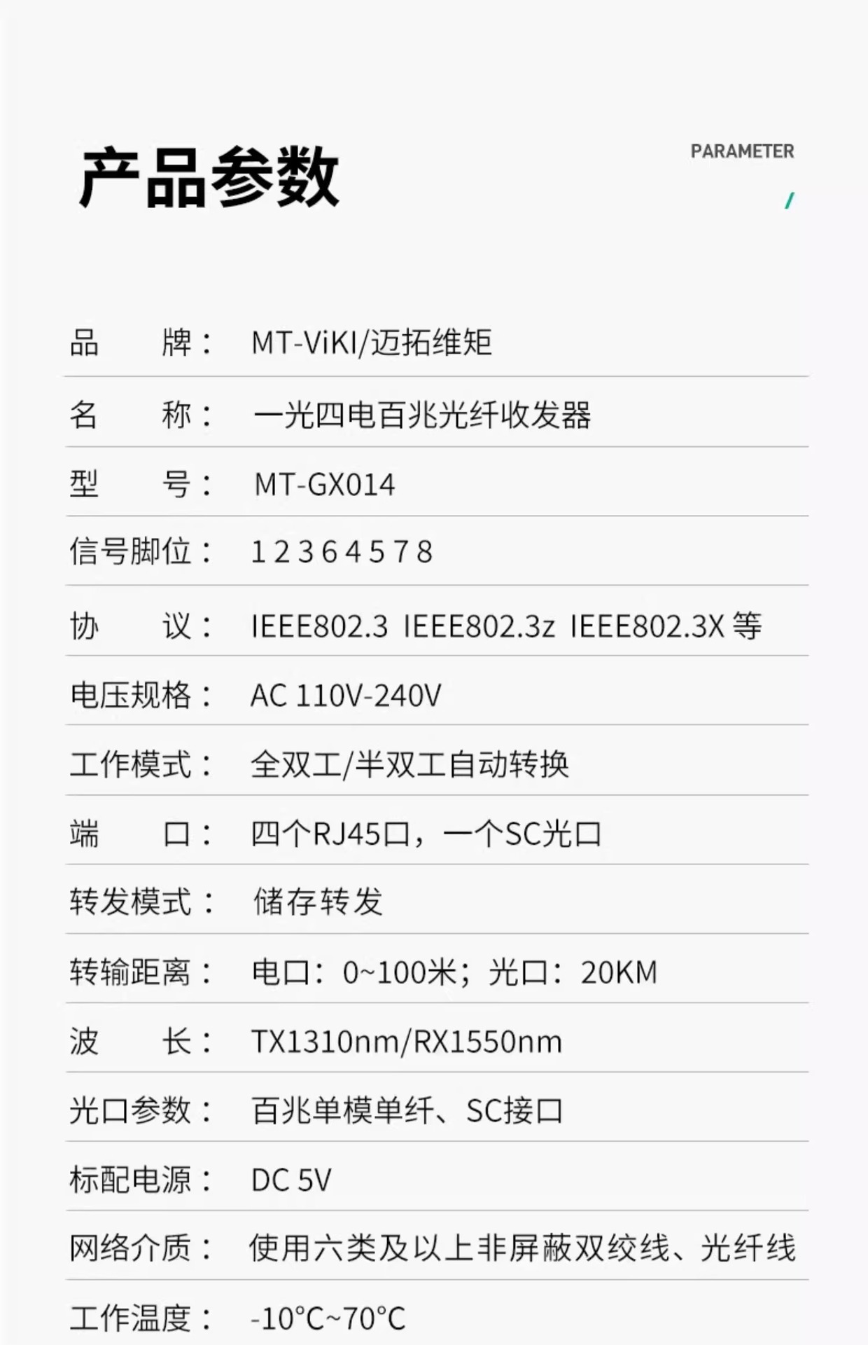 Maxtor Mt-Gx014 оптический трансивер 100м гигабитный фотоэлектрический преобразователь пара SC интерфейс одномодовый