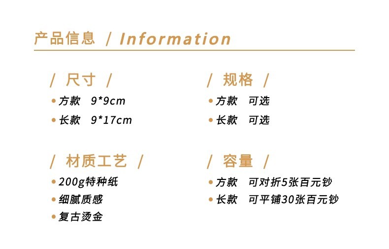 ![]() | L type - small size [get money to spend immediately] | New year's high-end hot stamping red envelope | ¥0.15 / ≈ 2 ₽ | 9997570 | 5989156317336 | |