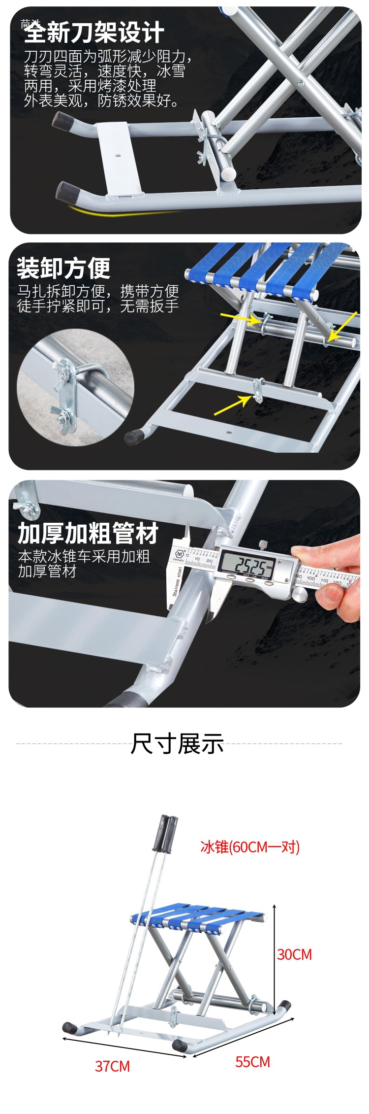 Уличные ледяные сани для взрослых и детей, двойные или многоместные ледяные сани, складные снежные сани, прочный оцинкованный ледоруб