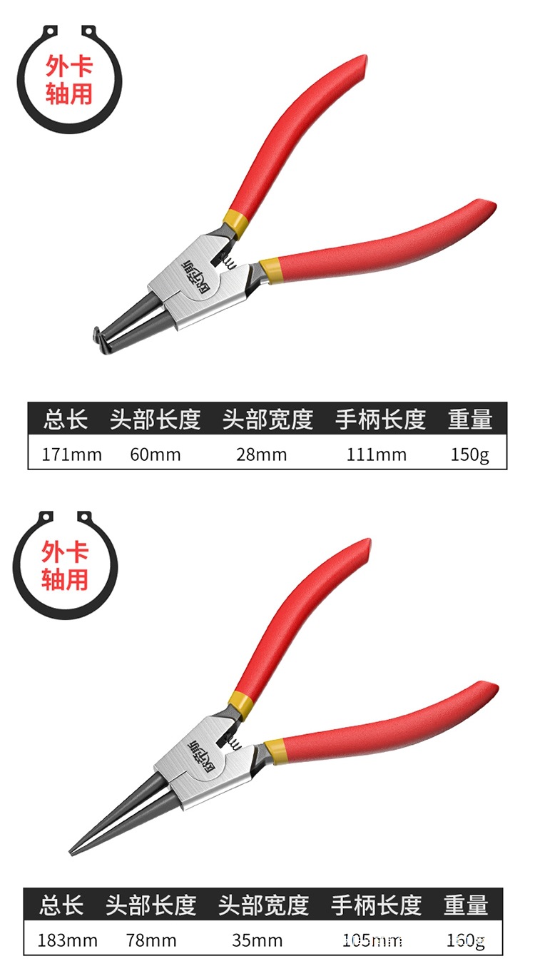 Плоскогубцы для стопорных колец для внутреннего и внешнего использования, плоскогубцы для расширения, плоскогубцы для стопорных колец, плоскогубцы для внутреннего и внешнего натяжения, большие плоскогубцы для стопорных колец