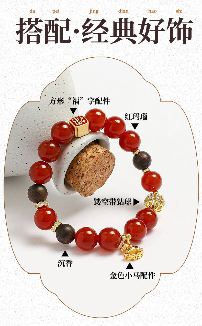 Браслет из натурального красного агата Год Лошади для девочек, праздничный браслет, кристаллы, распродажа, оптовая продажа