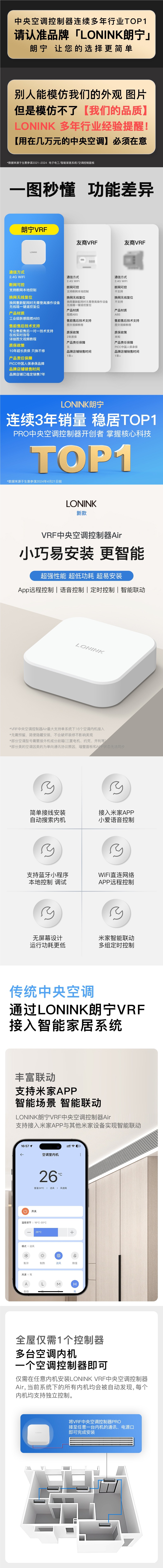 Контроллер центрального кондиционера Langning Vrf, умный удаленный термостат, подключен к голосовому управлению Mijia Xiaoai