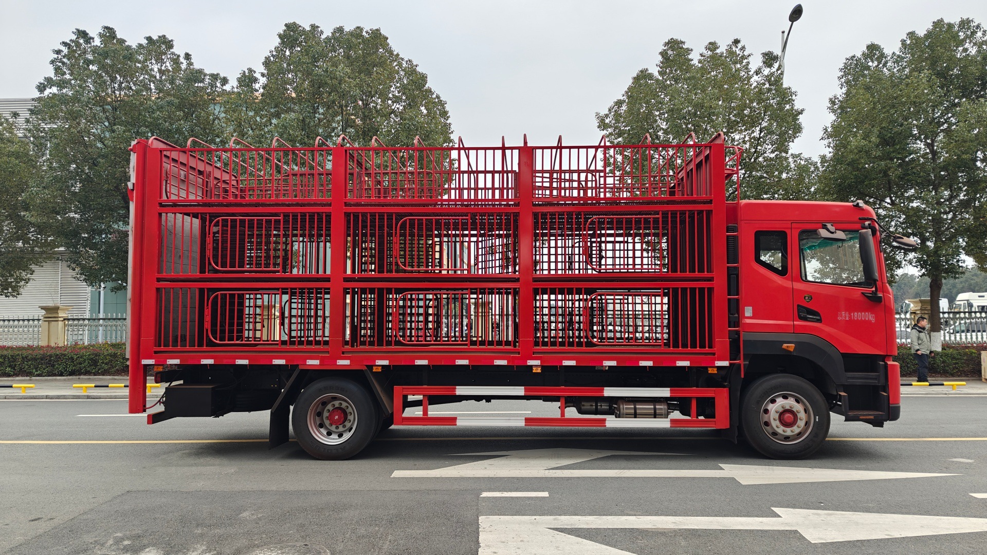 上装配置:三层拉猪车车厢配置,上中下分三层,每层分十个隔笼,第一层底板为三个厚防滑板,第二层第三层底板为2mm镀锌冲孔板,两边花篮圆管为20mm直径镀锌管,间距10公分,花篮圆管厚度两个厚,箱内隔栏隔层均为活动可拆卸,纵梁140刚强度钢,边梁120刚强度钢,横梁100刚强度钢,立柱4个厚,外形及尺寸按公告定做。箱体多层结构、隔笼分配、液压尾板根据实际需求选择。