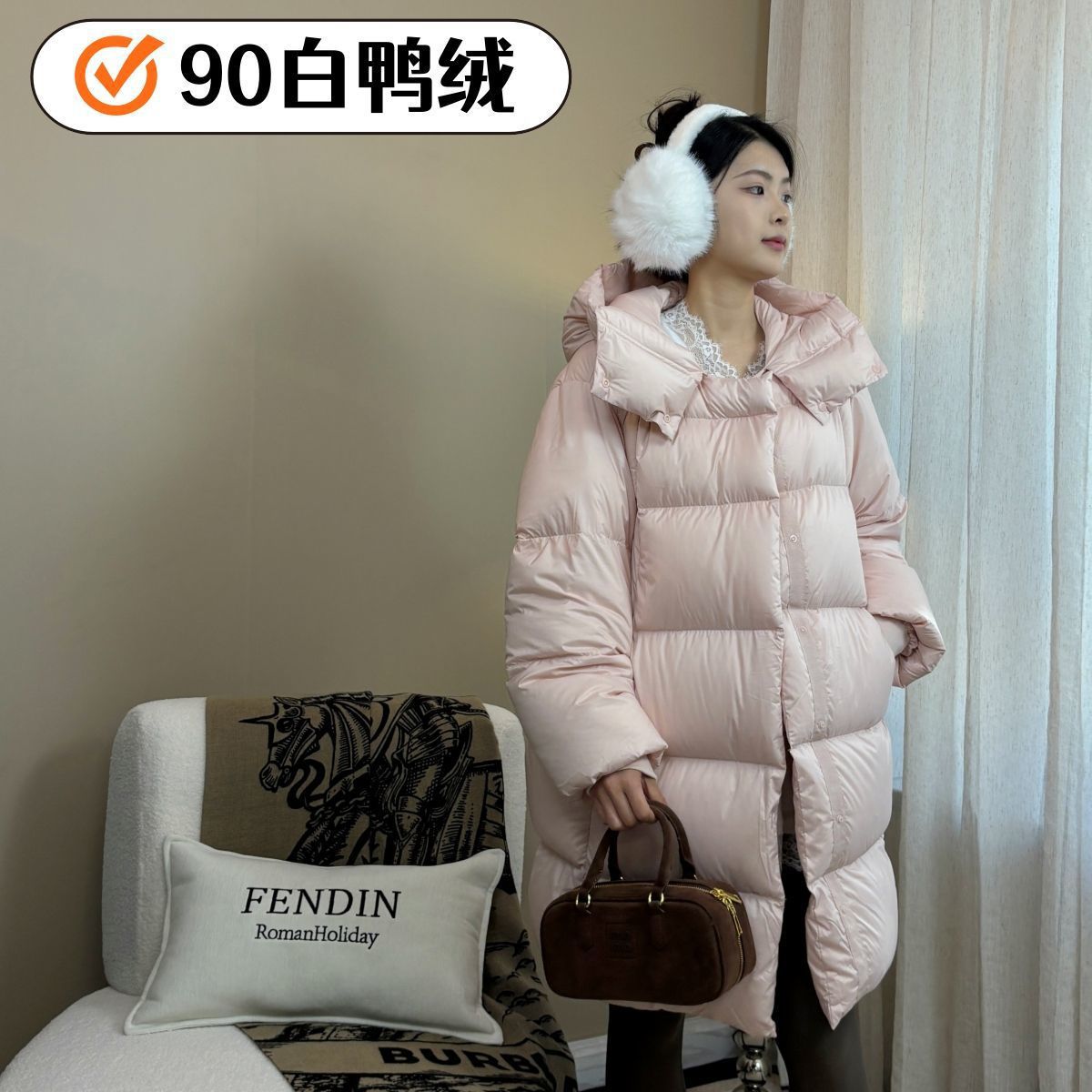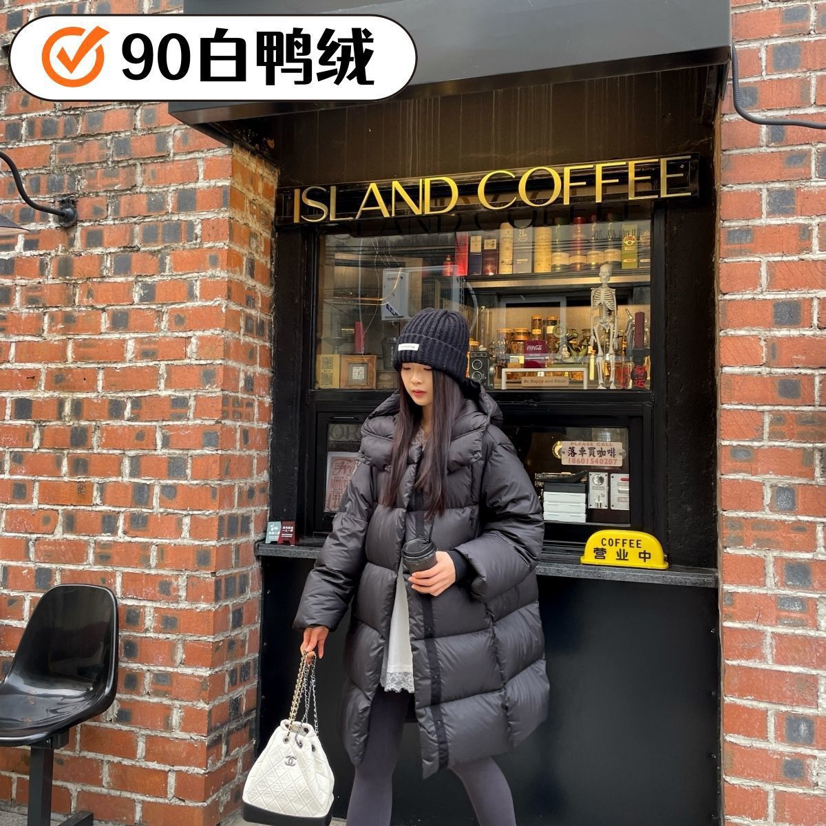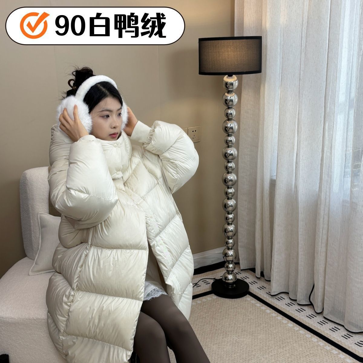 Новая куртка в форме кокона, облако, для женщин, средней длины, выше колена, с капюшоном, свободная, корейский стиль, из белого утиного пуха, модная