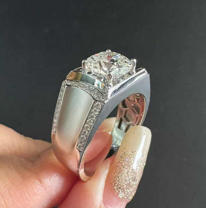 Мужское кольцо из платины Pt950 с 2-каратным круглым культивированным алмазом, мужское кольцо из 18К золота, модное и универсальное