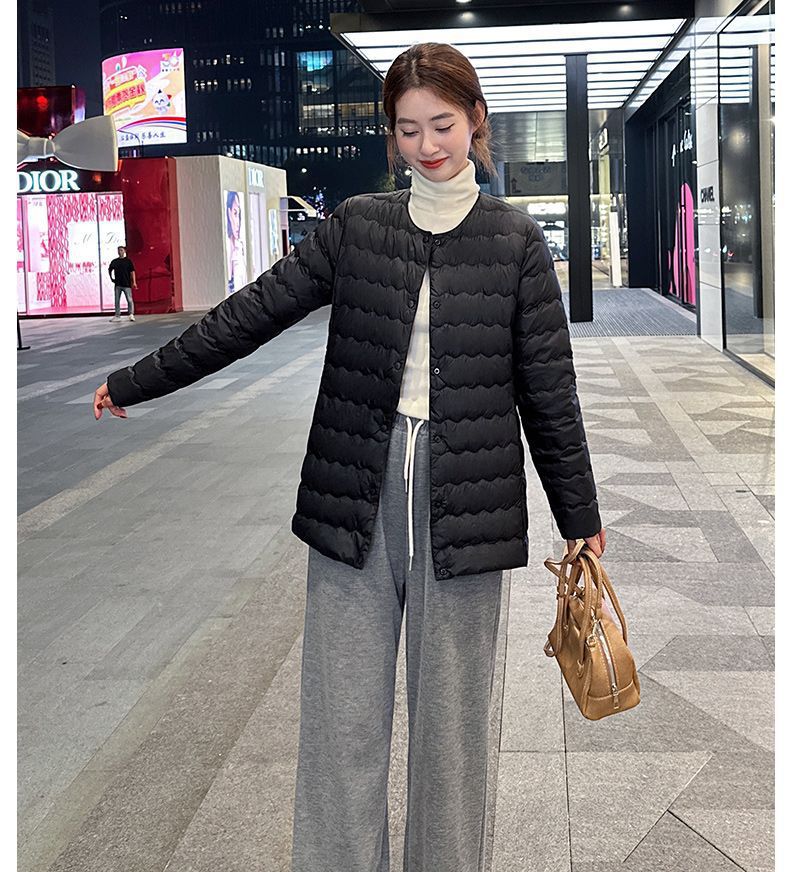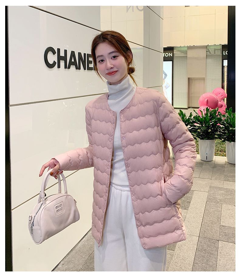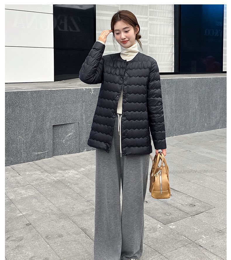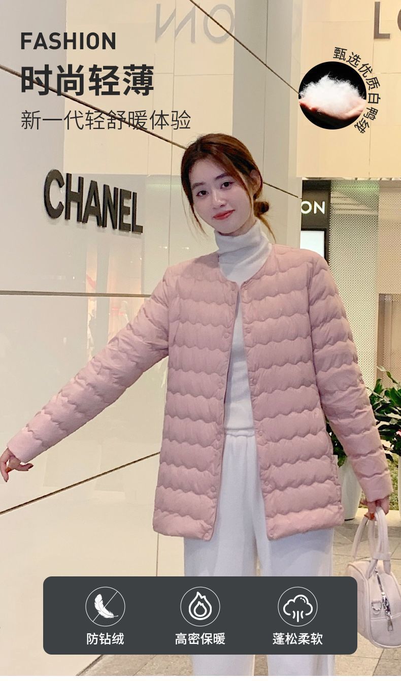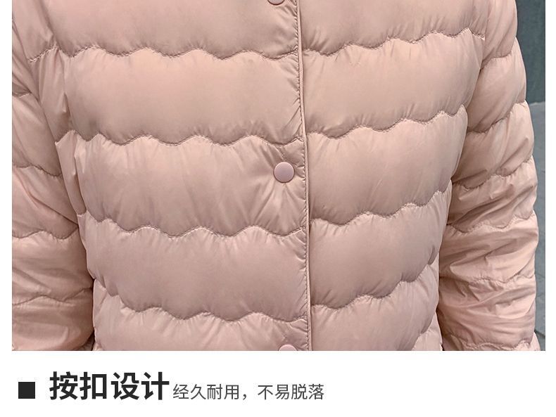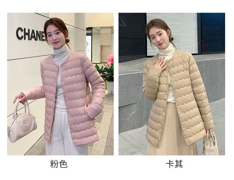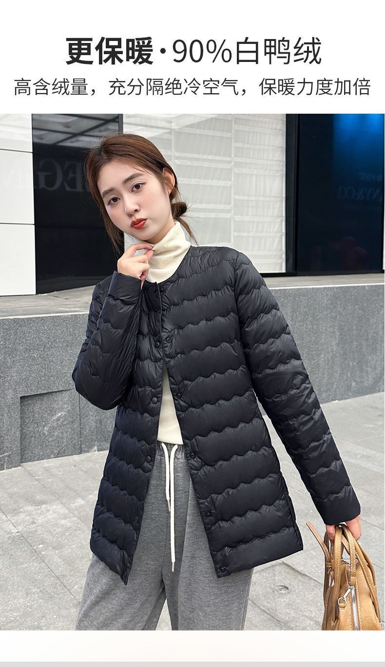 Куртка из пуха, женская, средней длины, без воротника, осень-зима, новый стиль, легкая, с утеплителем из белого утиного пуха, модная, легкая, круглый вырез, теплая куртка