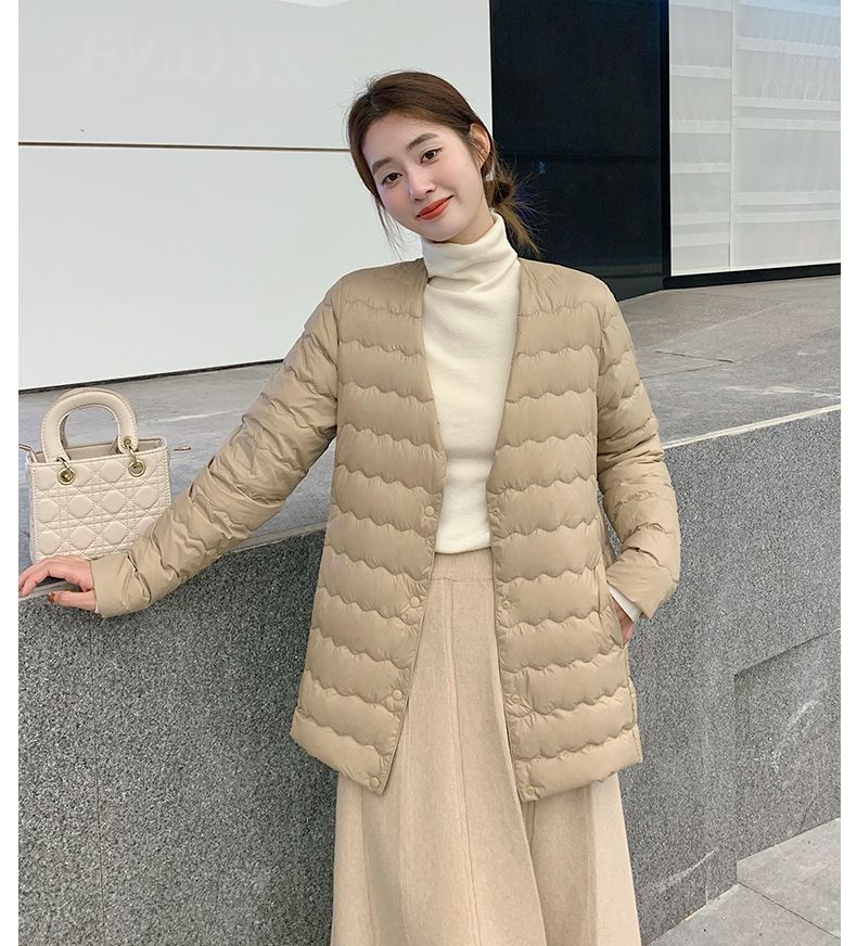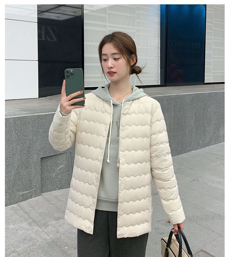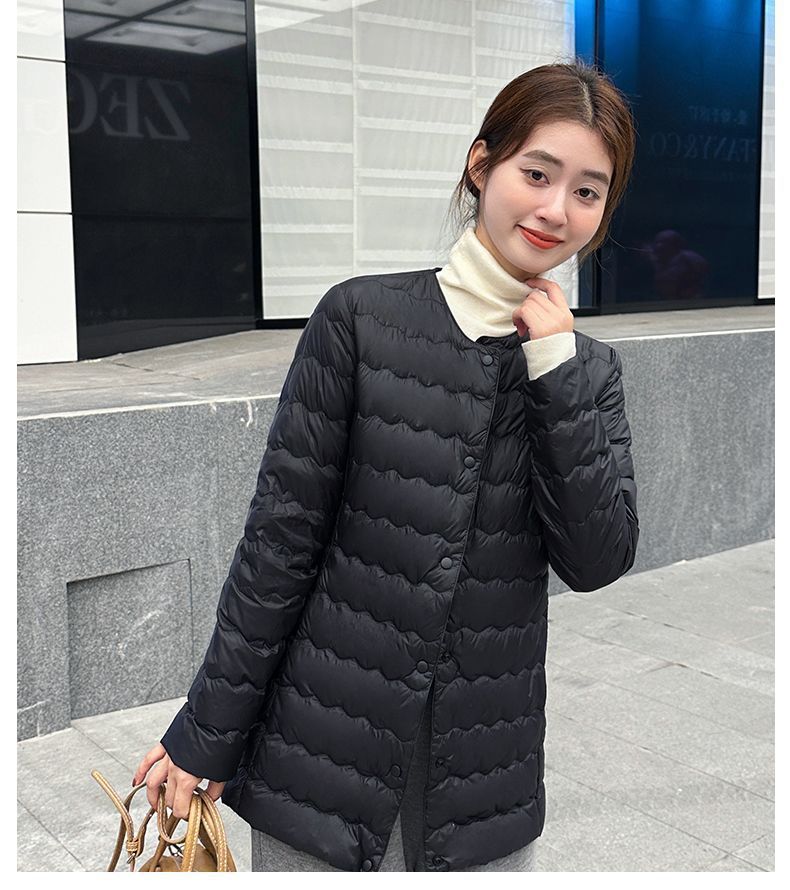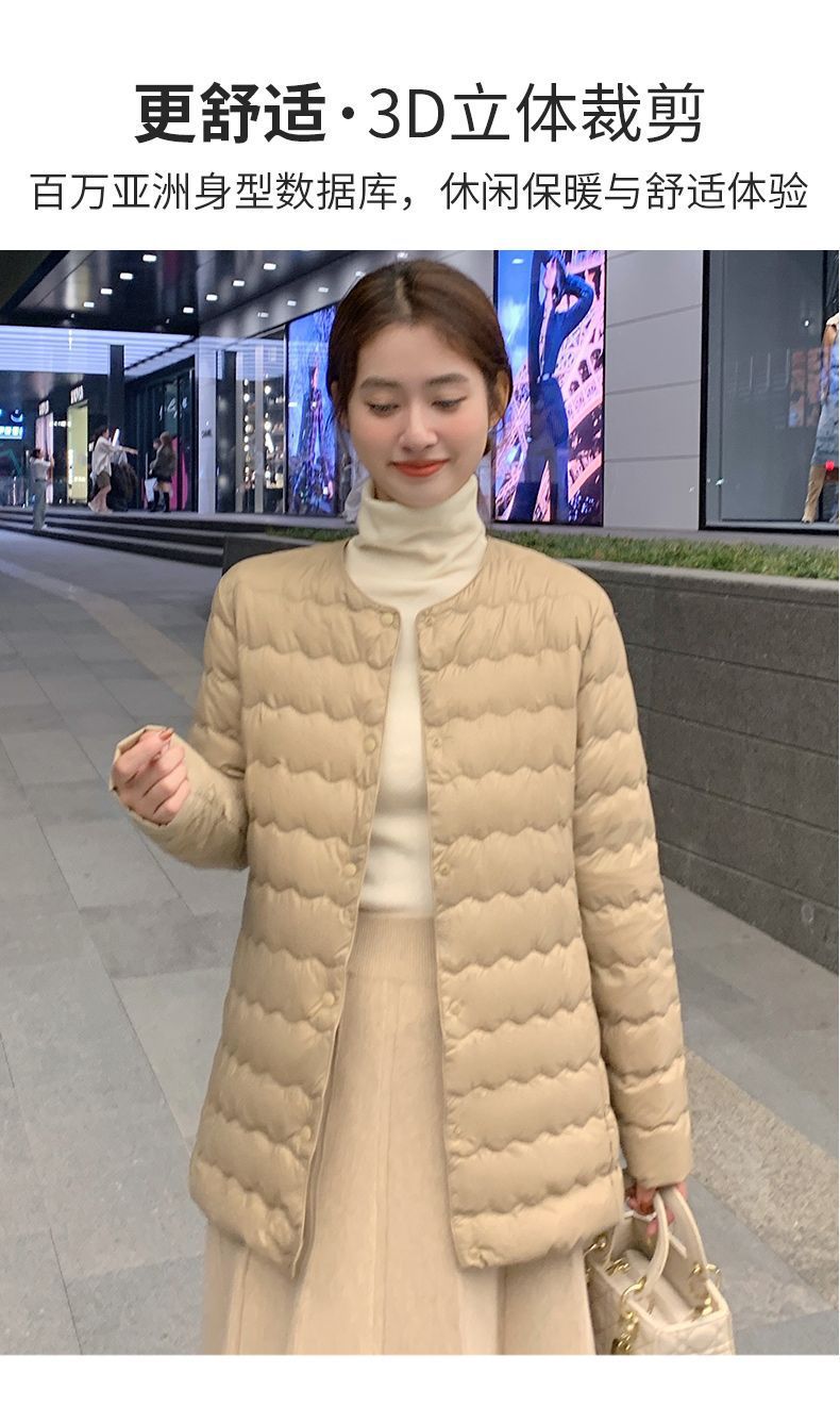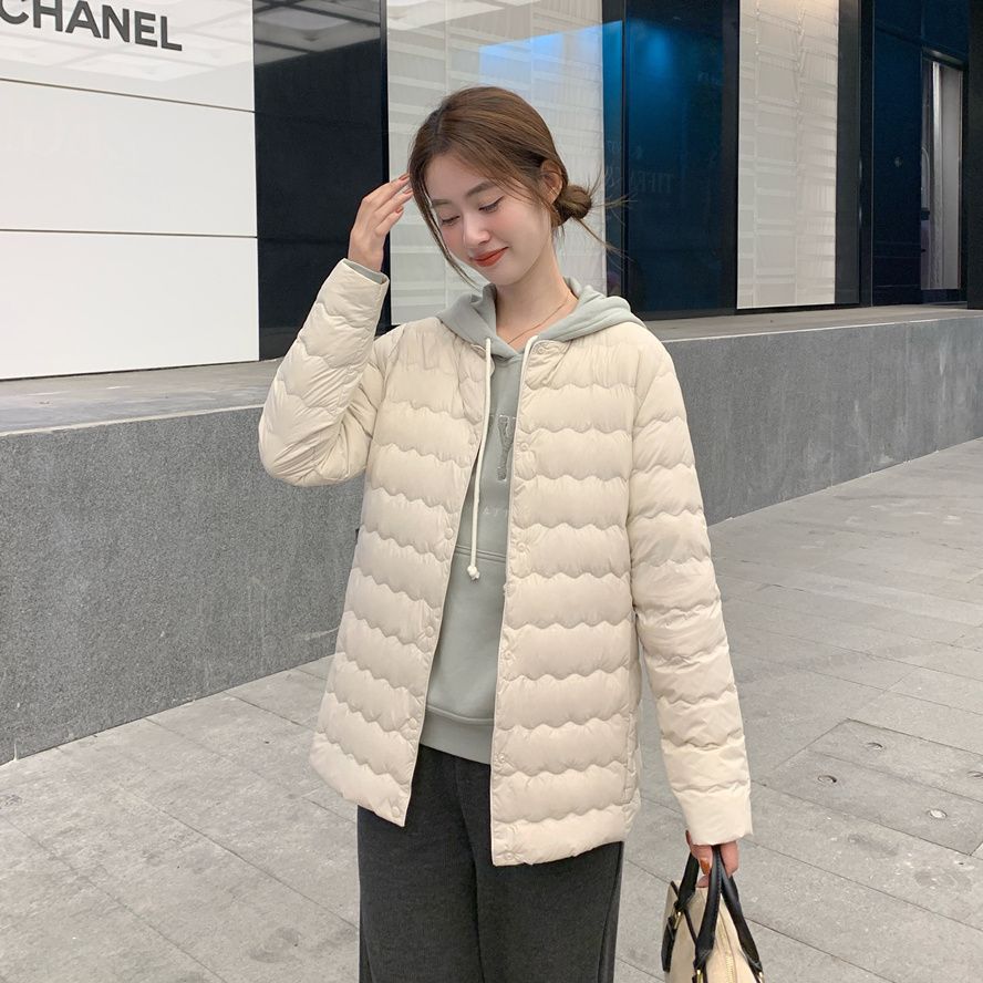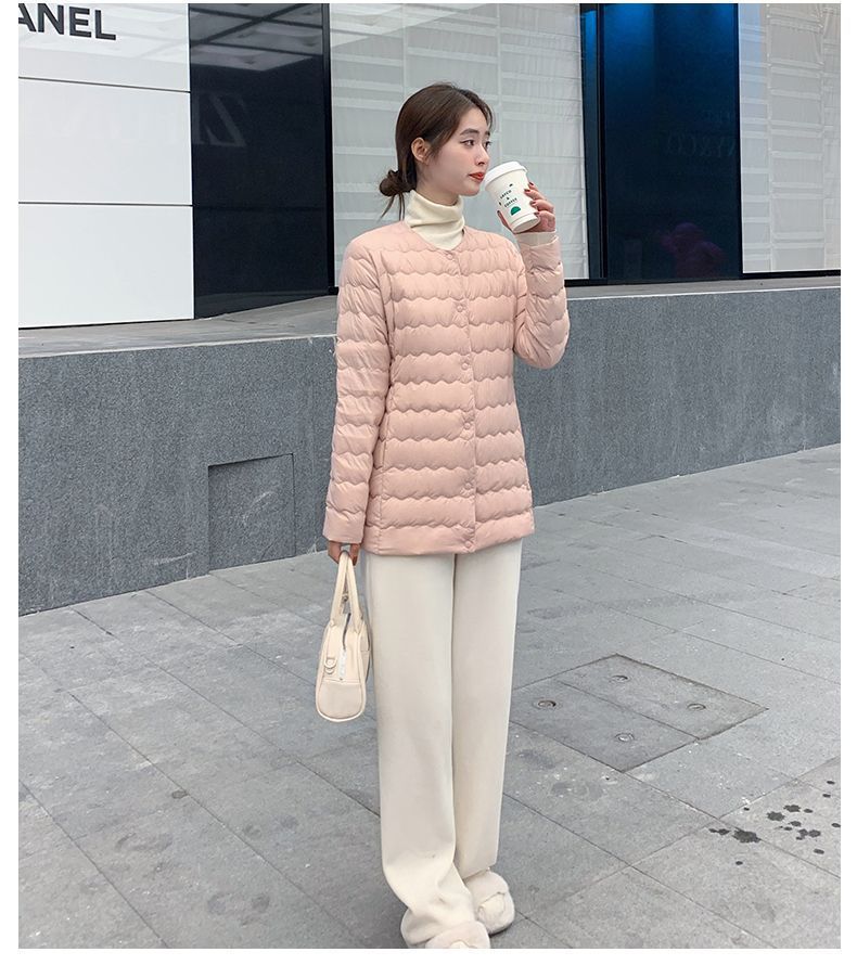 Куртка из пуха, женская, средней длины, без воротника, осень-зима, новый стиль, легкая, с утеплителем из белого утиного пуха, модная, легкая, круглый вырез, теплая куртка