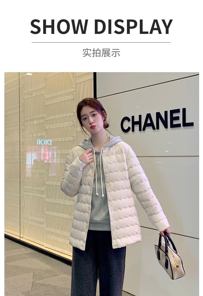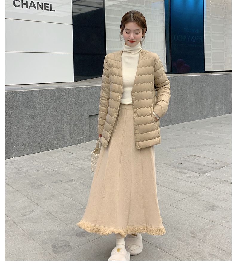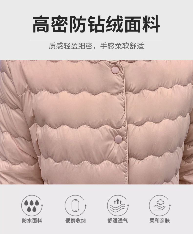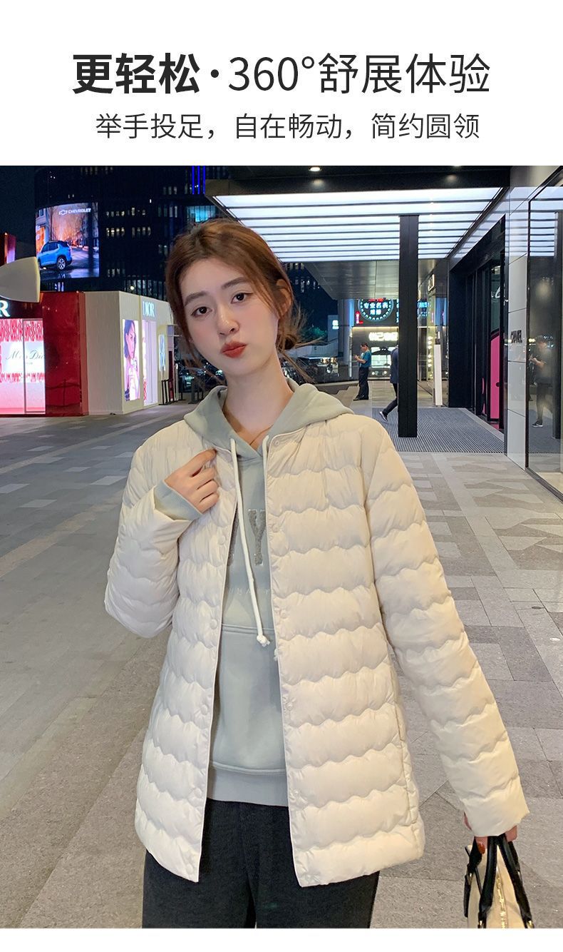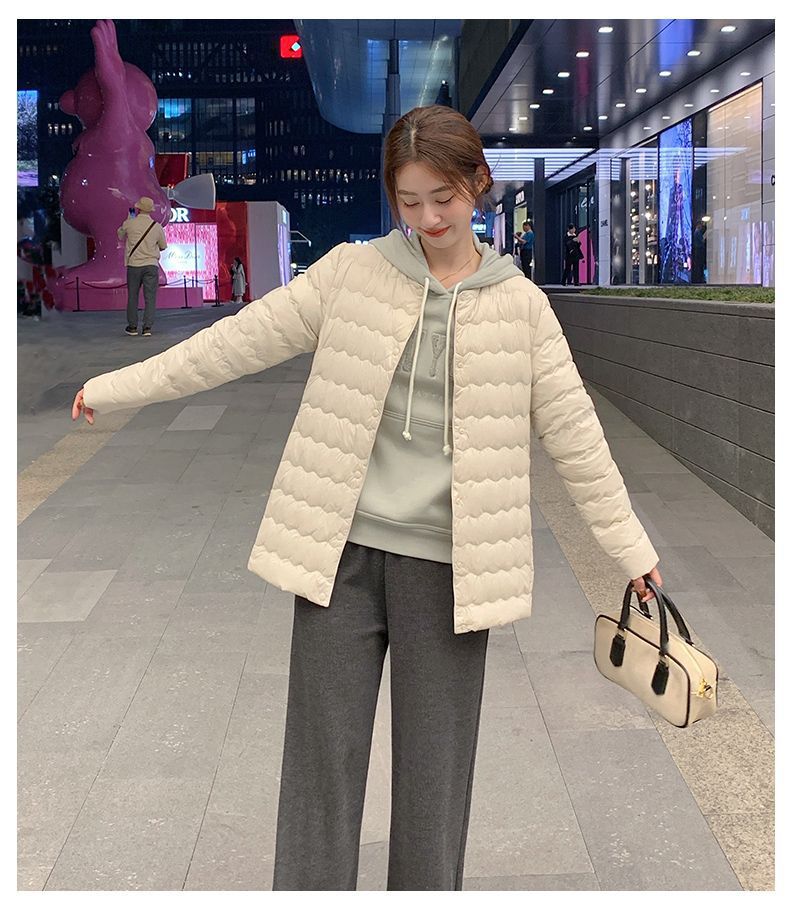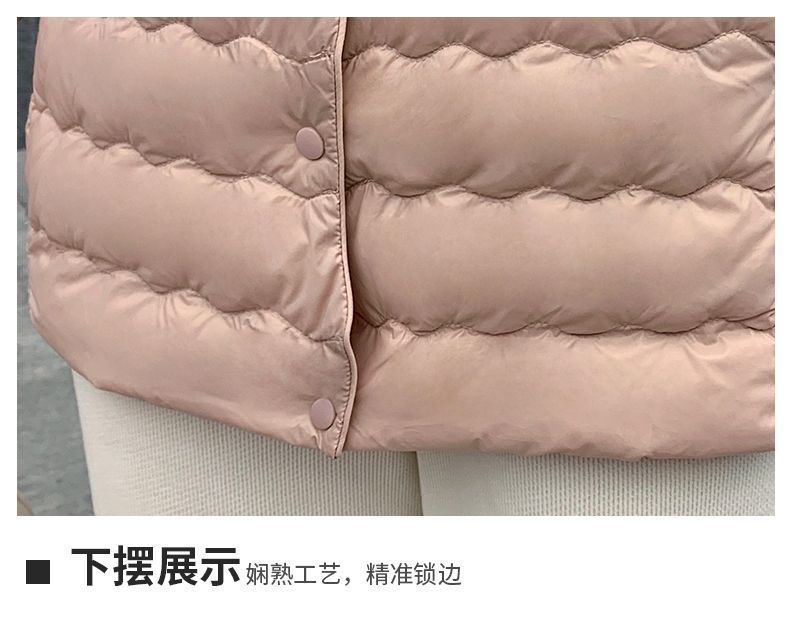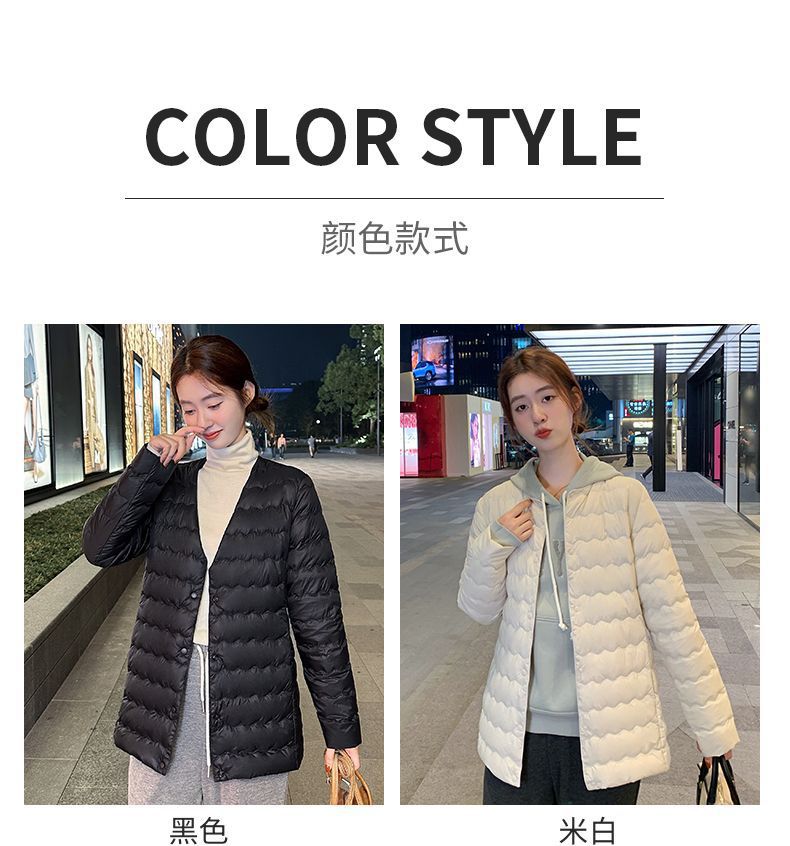 Куртка из пуха, женская, средней длины, без воротника, осень-зима, новый стиль, легкая, с утеплителем из белого утиного пуха, модная, легкая, круглый вырез, теплая куртка