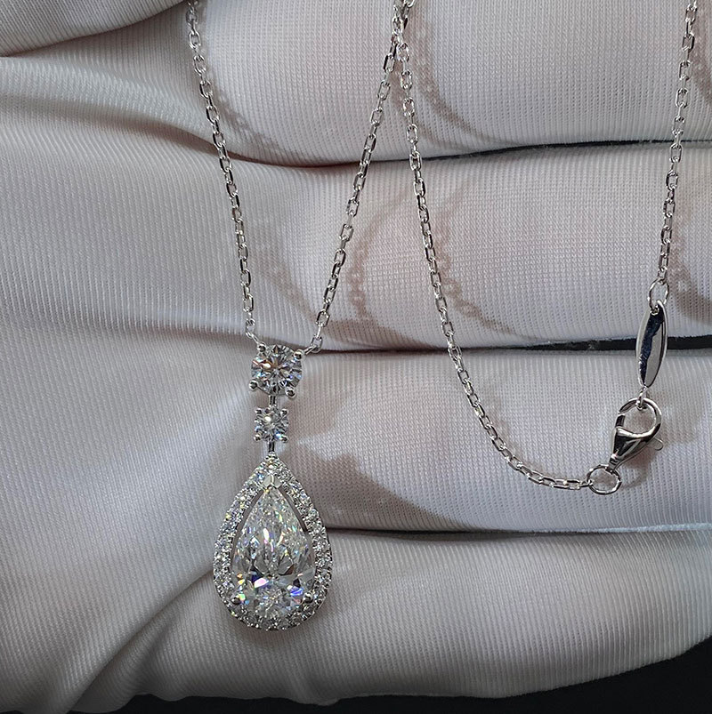 Ожерелье из платины Pt950 с лабораторно вырощенным бриллиантом 3 карата, ожерелье в форме капли, доступная роскошь, кулон на ключицу