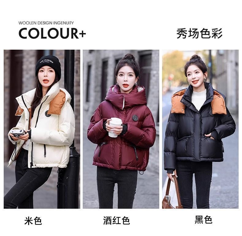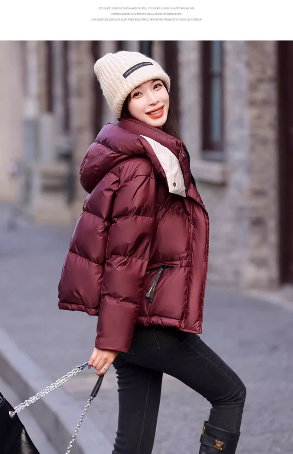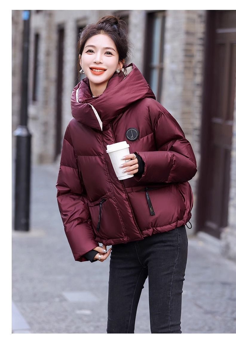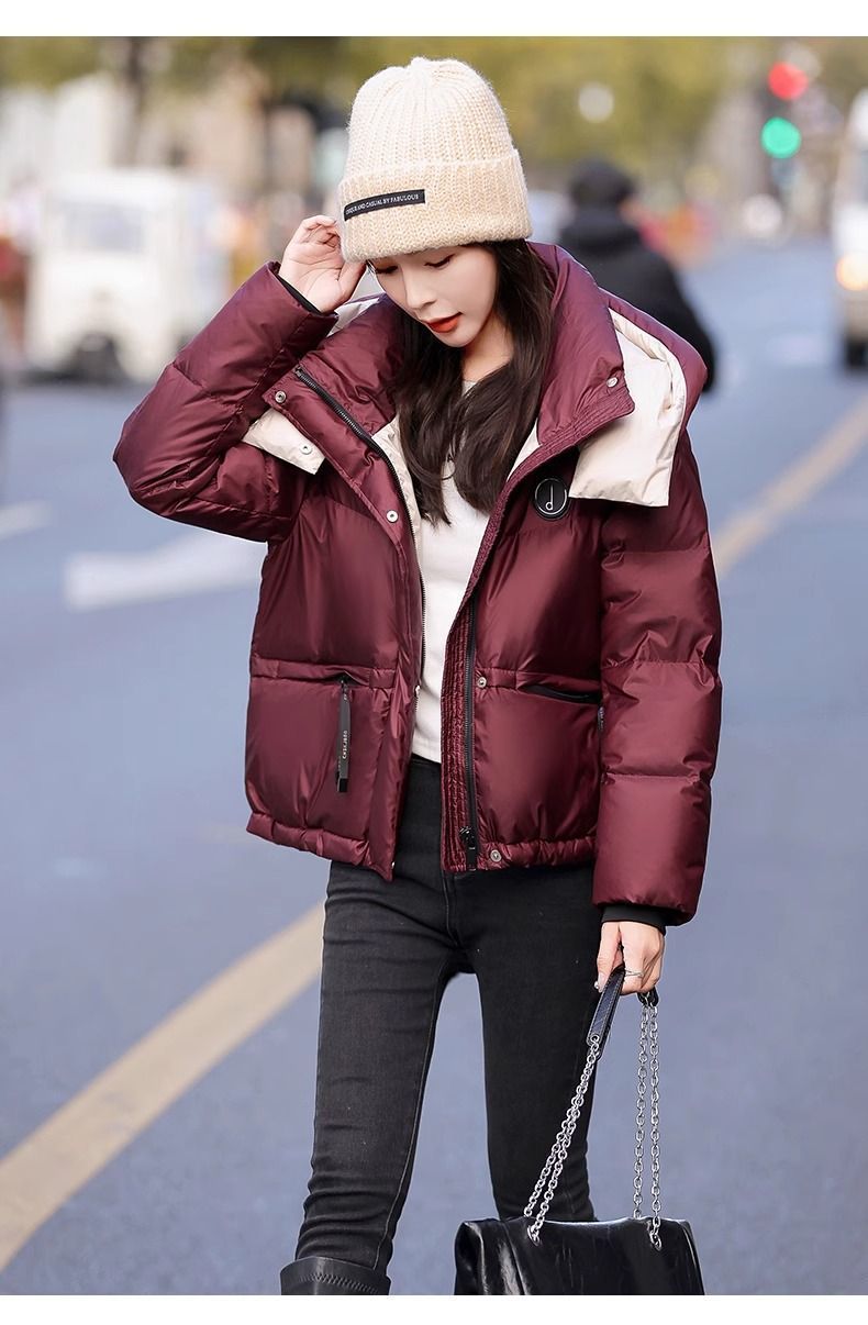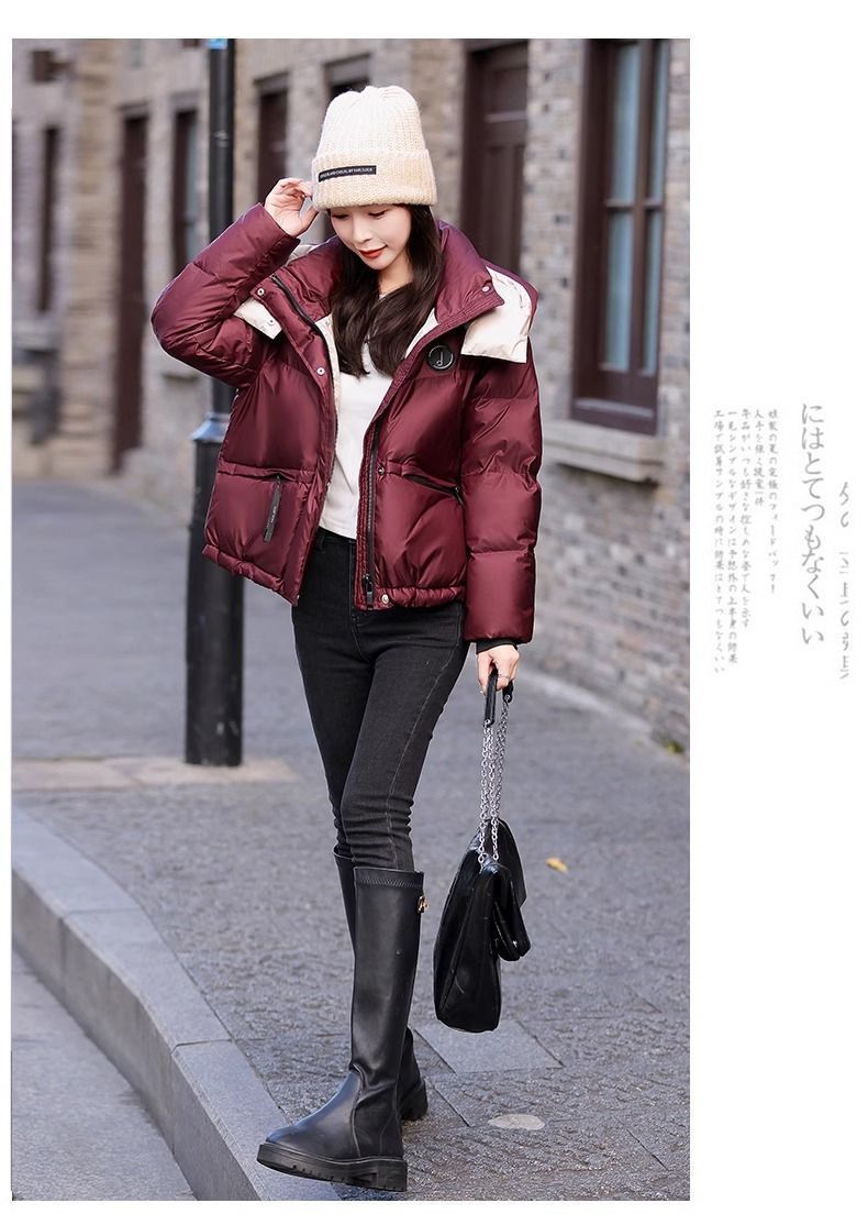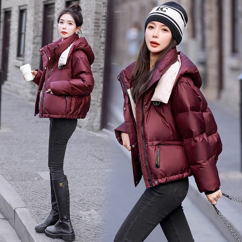 Куртка с контрастной цветной стежкой, короткая, зимняя, новый стиль, популярная в этом году, маленькая хлебная куртка, бордовая