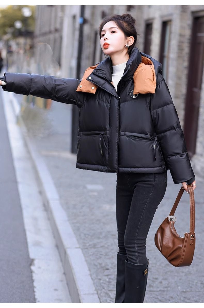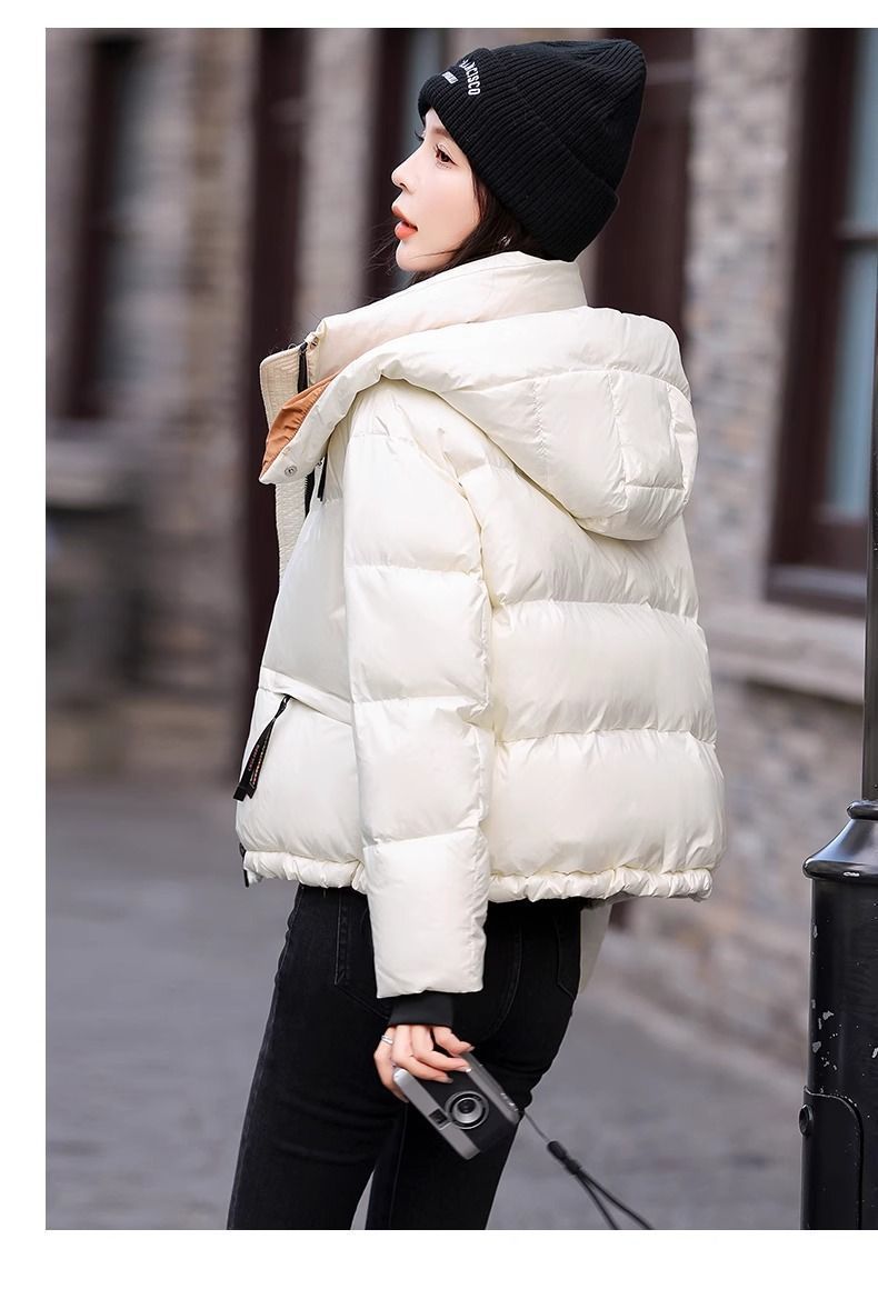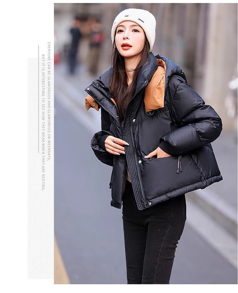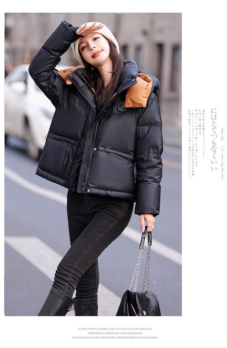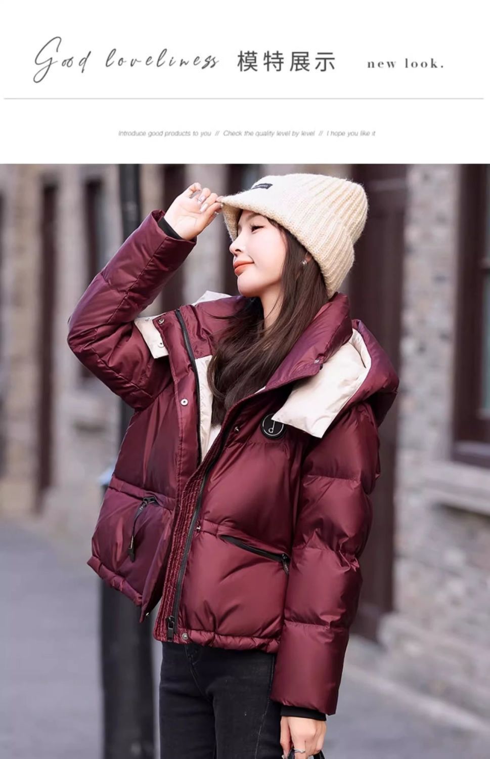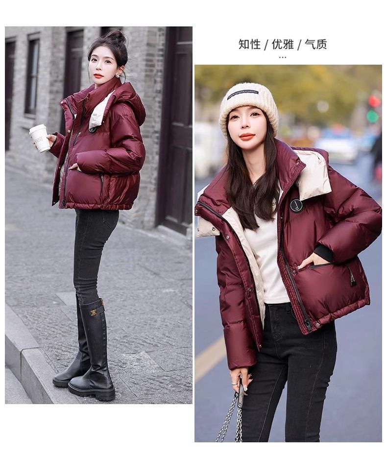 Куртка с контрастной цветной стежкой, короткая, зимняя, новый стиль, популярная в этом году, маленькая хлебная куртка, бордовая