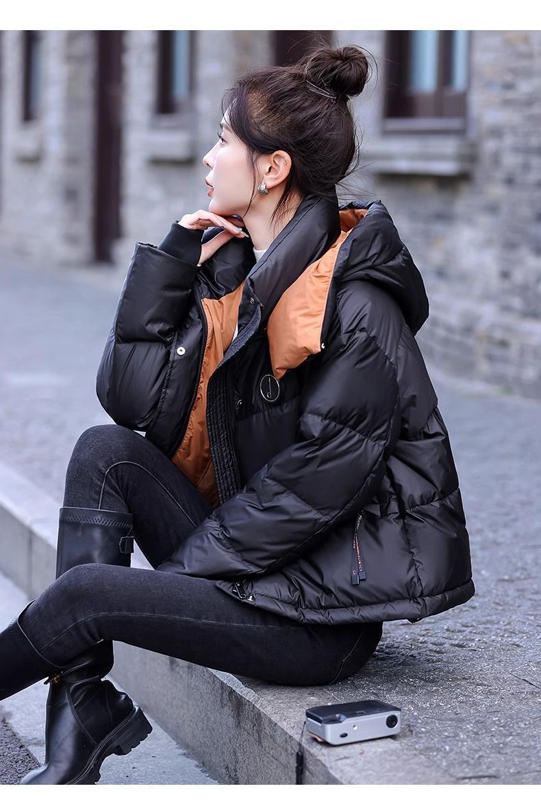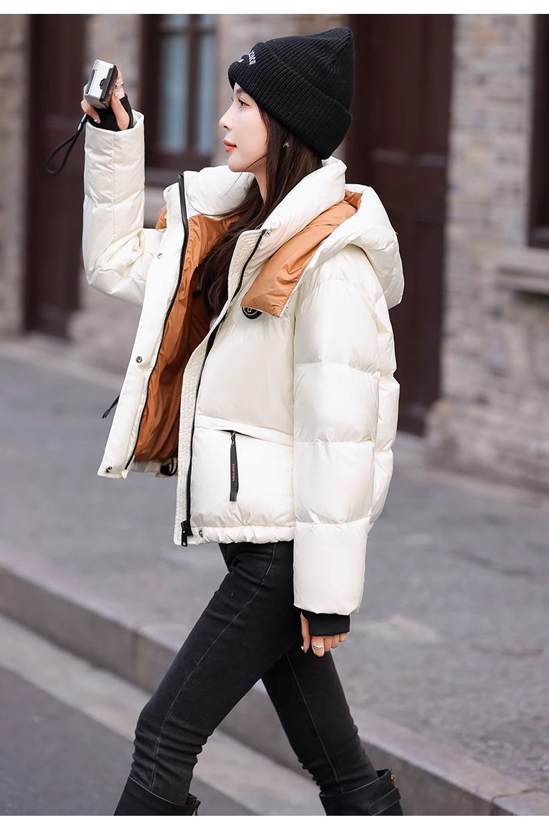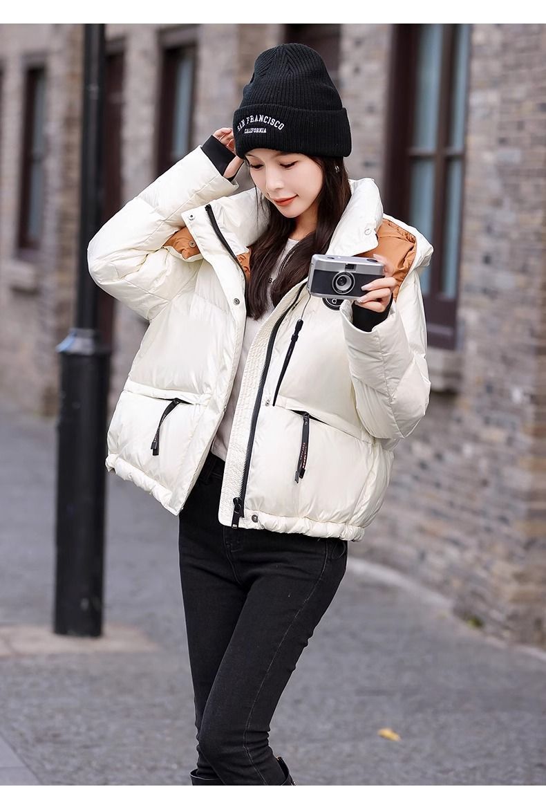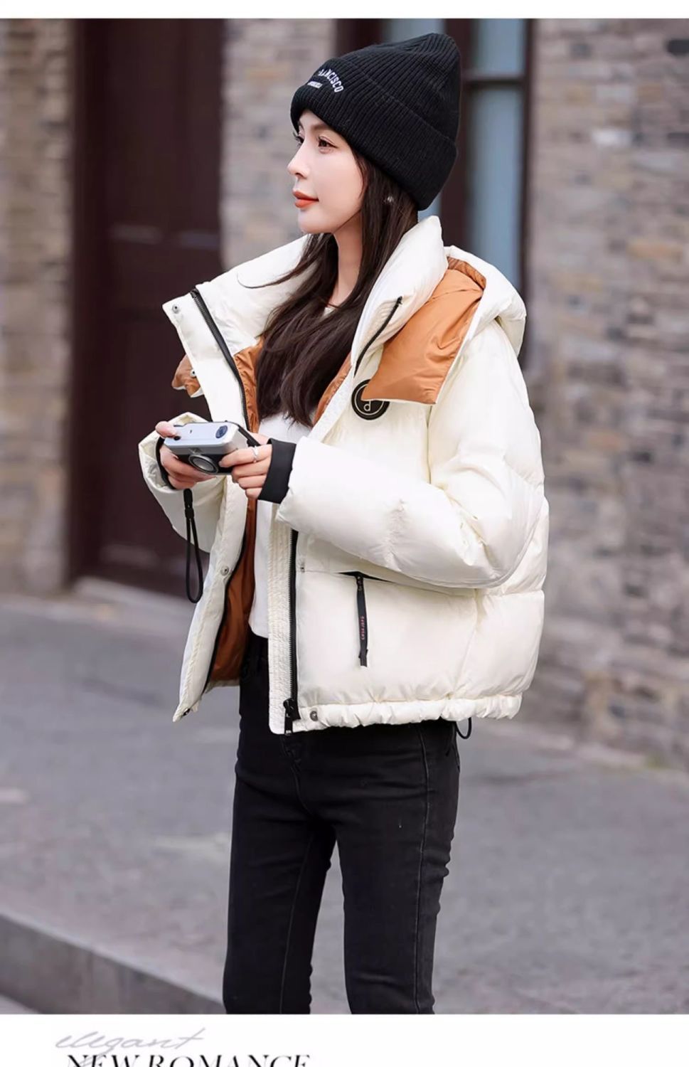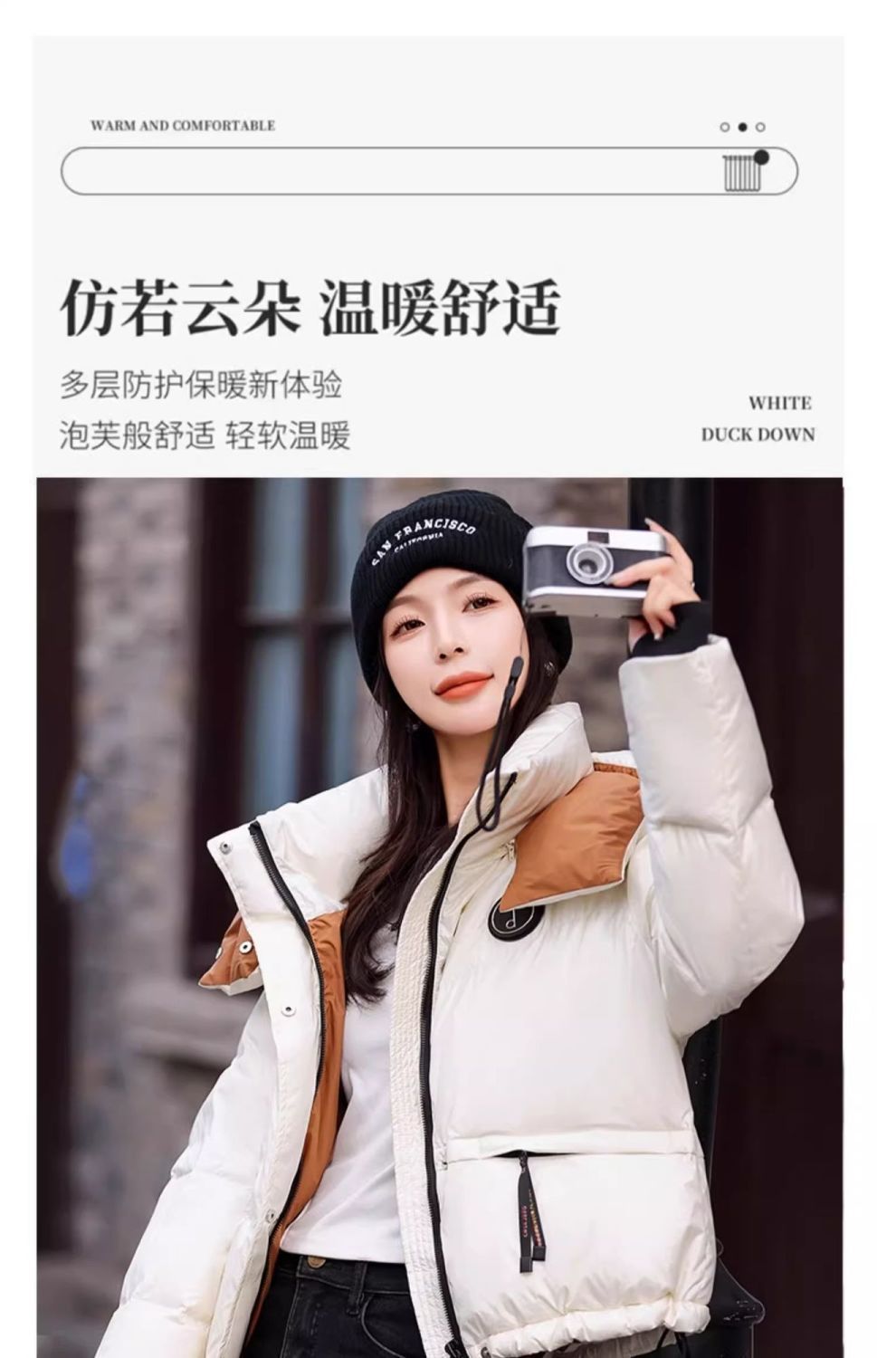 Куртка с контрастной цветной стежкой, короткая, зимняя, новый стиль, популярная в этом году, маленькая хлебная куртка, бордовая