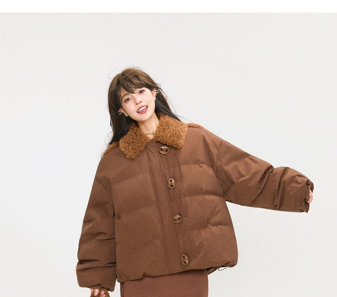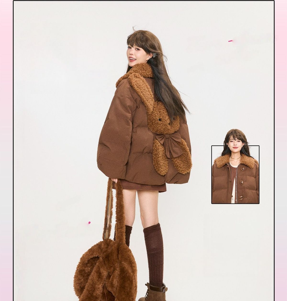 Зимняя новая короткая куртка из белого утиного пуха для женщин, в колледжском стиле, утолщенная, симпатичный нишевый дизайн с ярлыком
