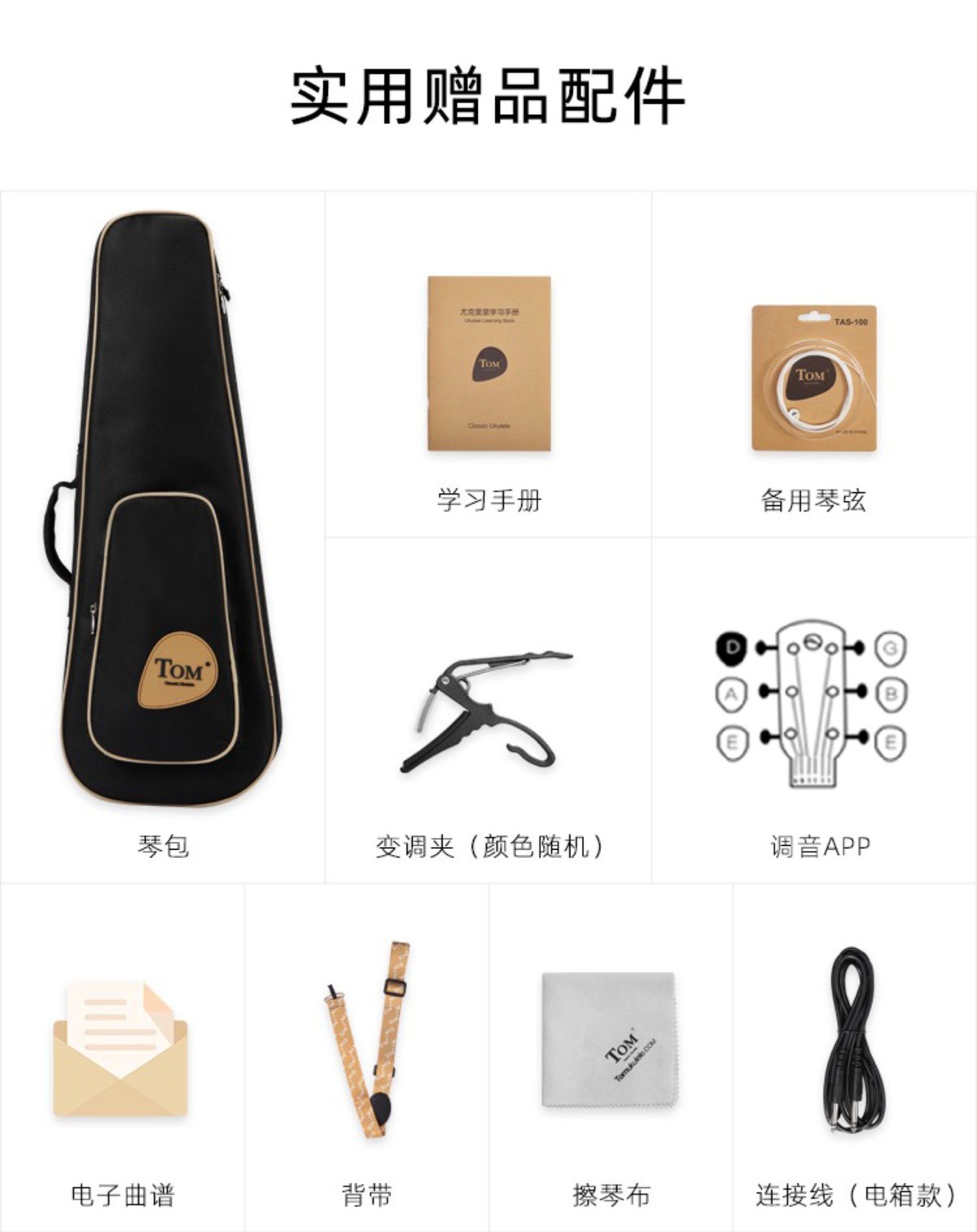 Немецкий 2026 Популярный производитель Tom Укулеле Tuc200B фанера Начальный 23 дюйма Маленькая гитара Начальный уровень 21
