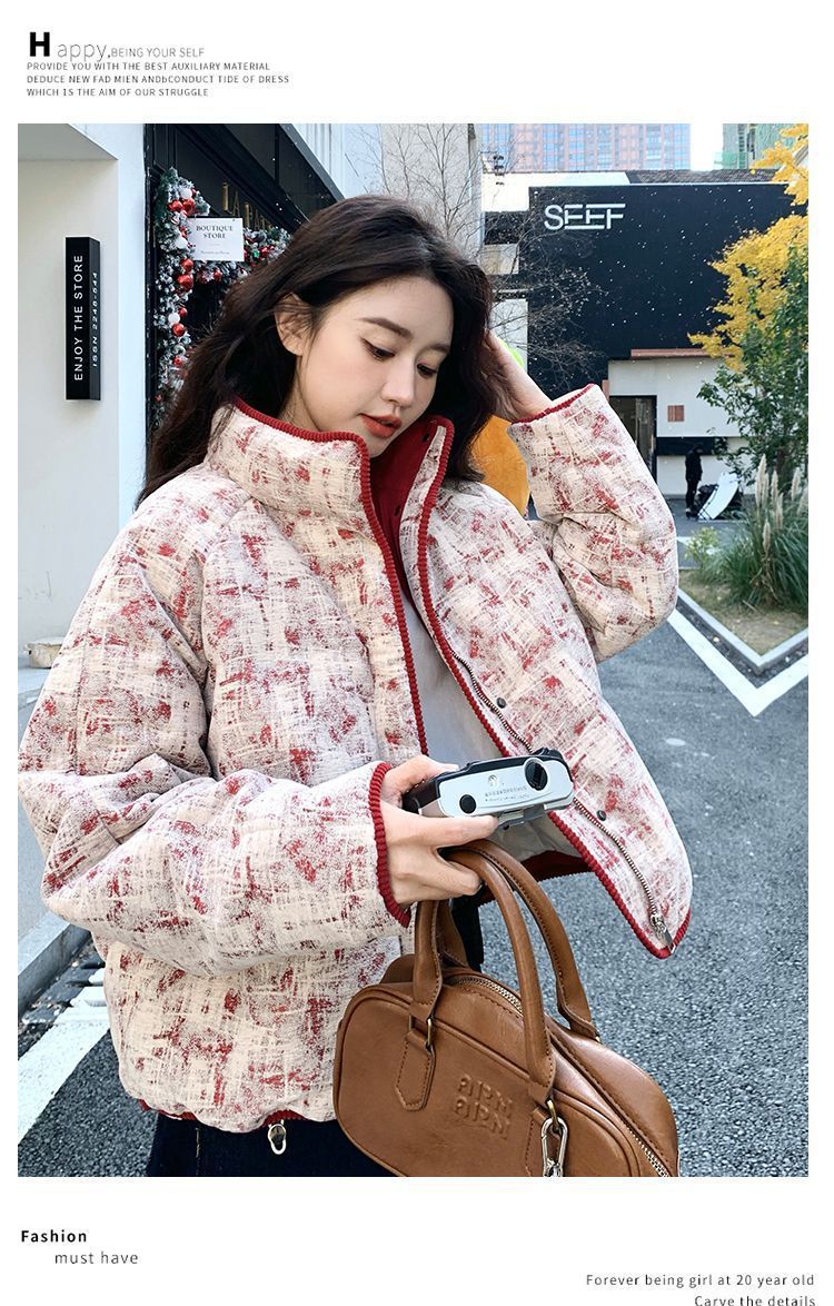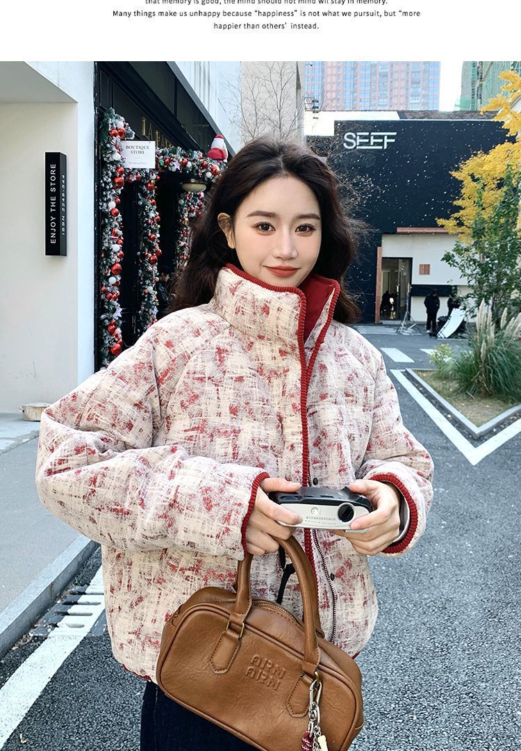 Красная куртка в стиле Шанель для женщин, зимняя, уменьшающая возраст, стильная, красивая, короткая куртка из белого утиного пуха, модная, с ярлыками