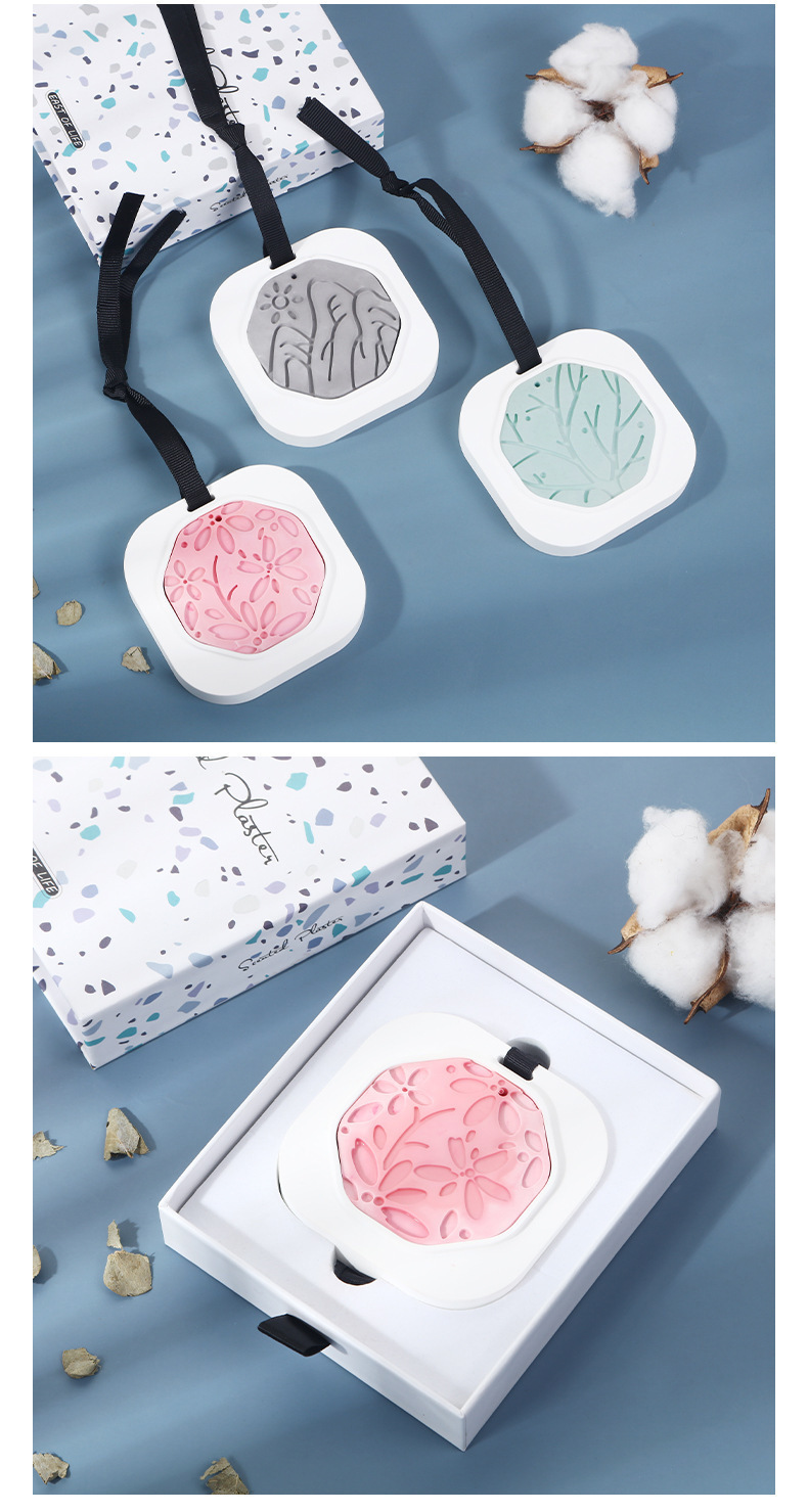 Оптовая продажа ароматических таблеток для автомобиля с рельефным гипсом, подвески для шкафа, ароматы для автомобиля