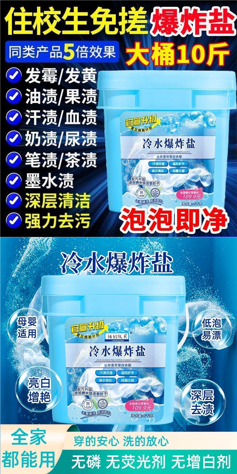 Соль для стирки в холодной воде, гладкая и защитная одежда, мгновенная школьная форма для холодной воды, новое средство для стирки, бытовой отбеливатель и удаление пятен