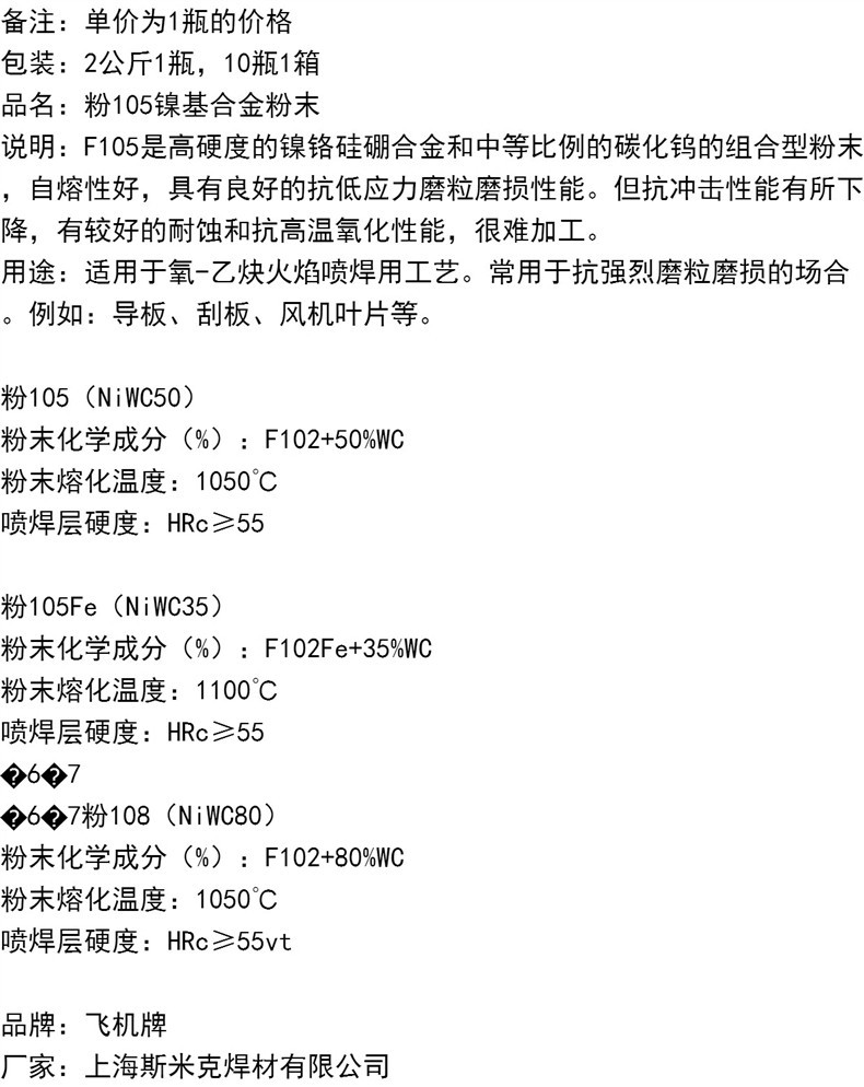 📦 | Powder 105 nickel base alloy powder 2kg 1 bottle price | ¥820.0 / ≈ 9 877 ₽ | 200 | 5988615196321 | |