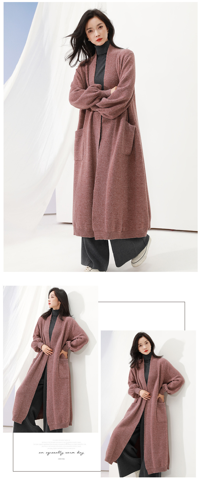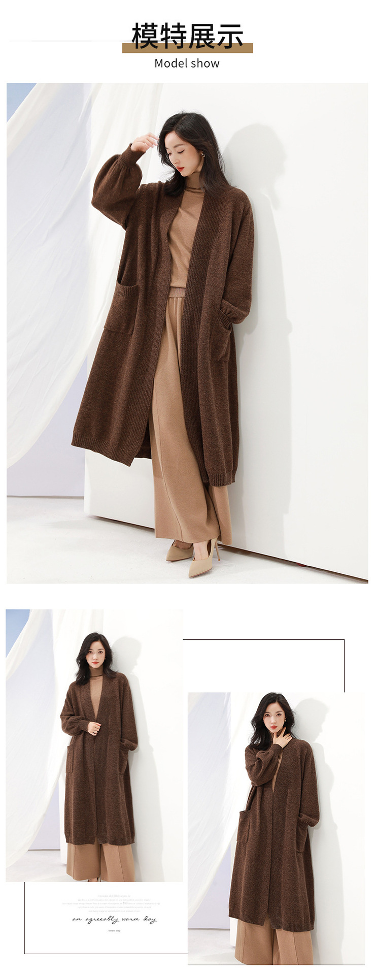 Осень и Зима Женский Утолщенный Тяжелый Шершава Кардиган Длинная Верхняя Одежда Однотонный Свободный Большой Размер Свитер Женская Обработка и Индивидуализация