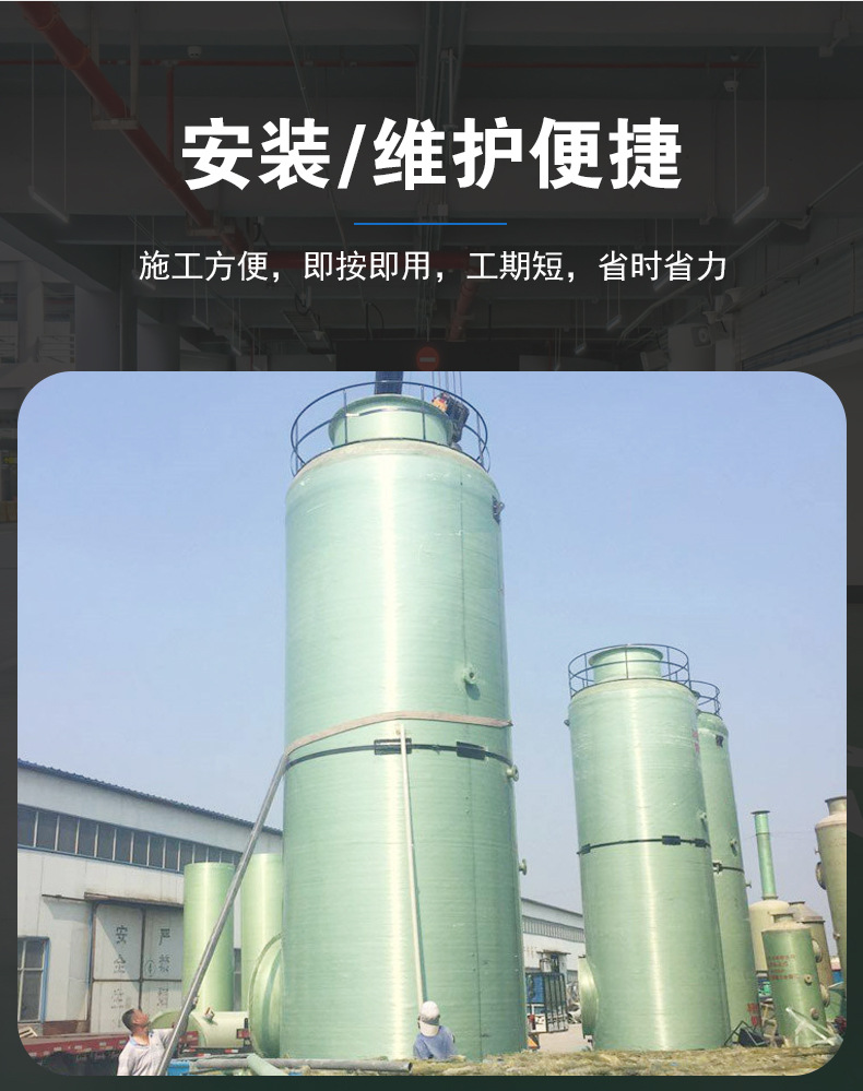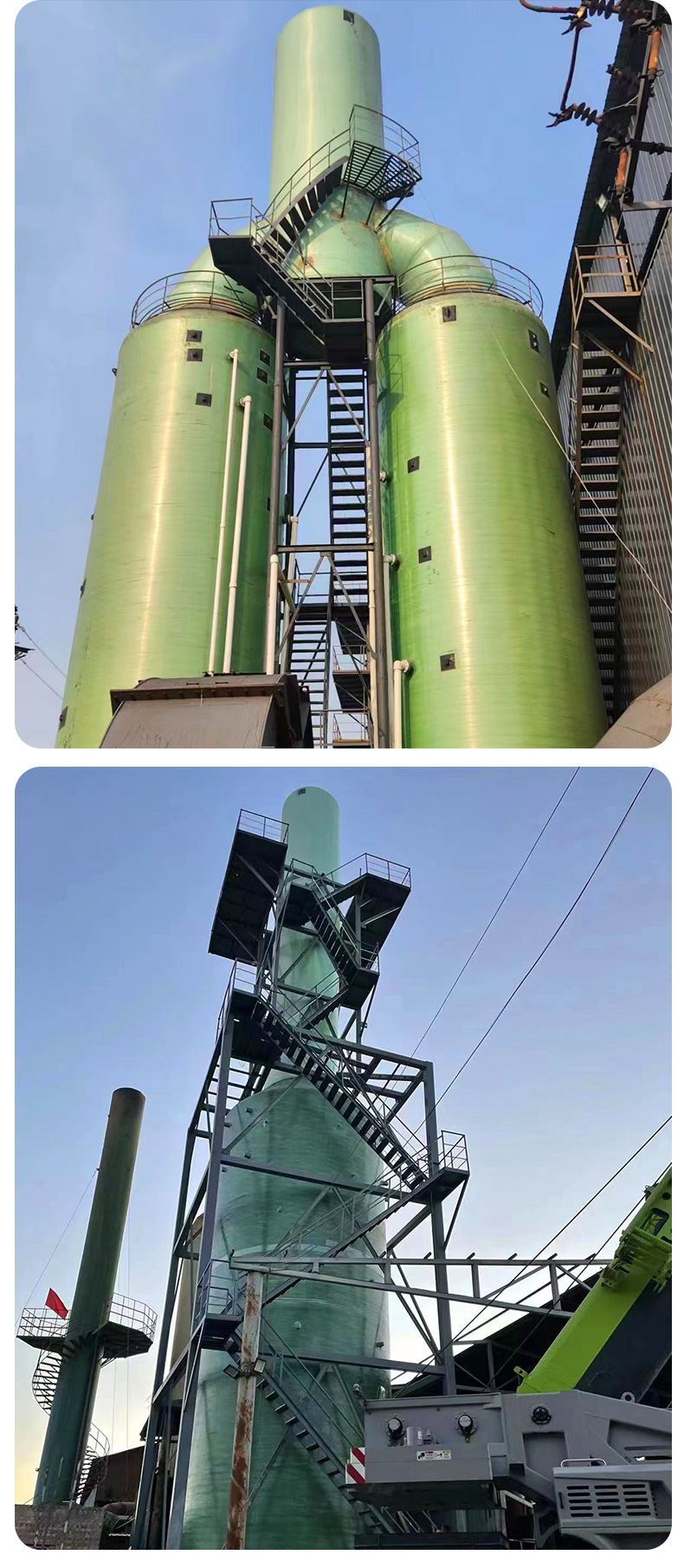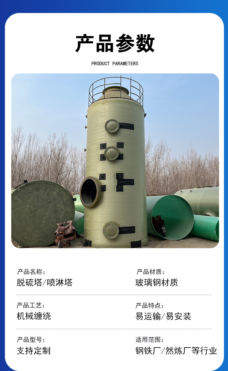 Башня десульфурации из стекловолокна, промышленная установка для очистки отходящих газов, устойчивая к кислотам и щелочам, эффективная десульфурация, денитрификация и удаление пыли