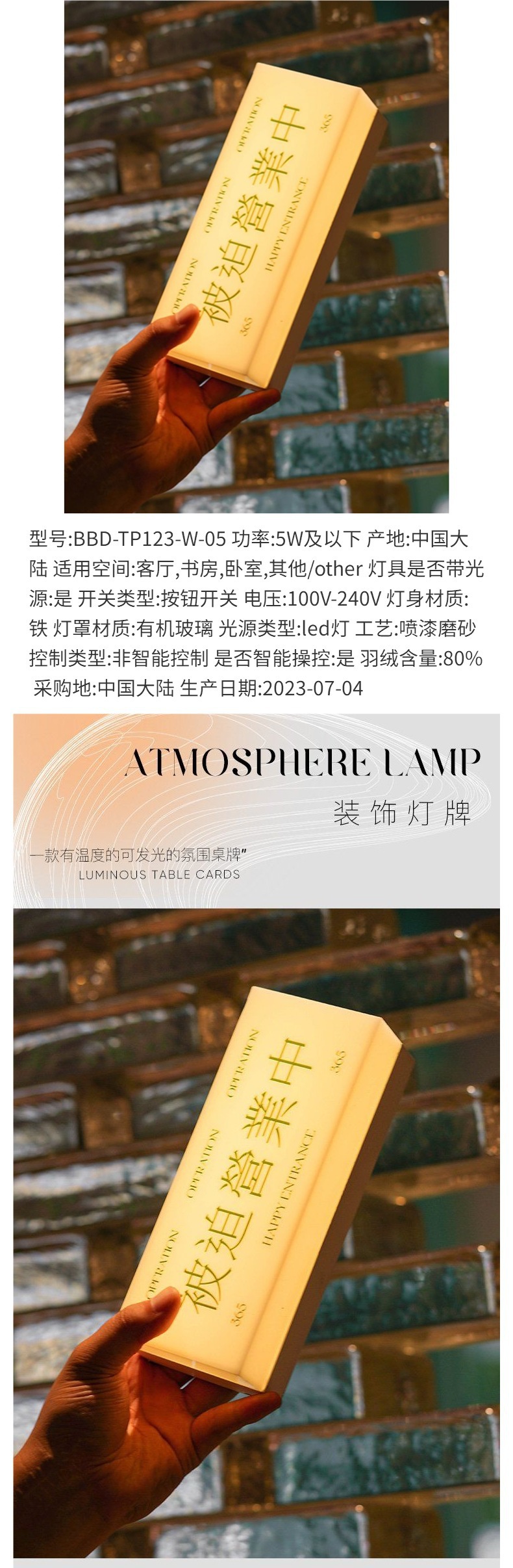 Японская лампа-табличка настольное украшение атмосферный свет акриловая стойка с принудительной работой зарядка от батареи светодиодное освещение