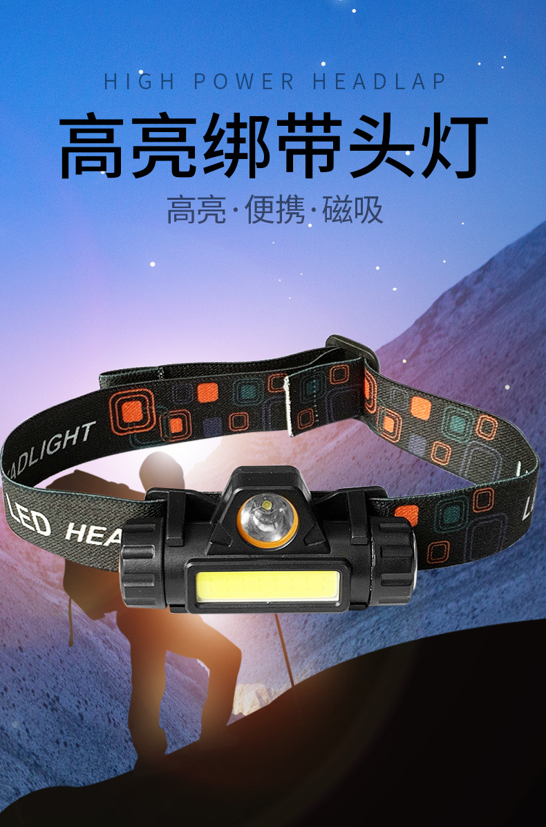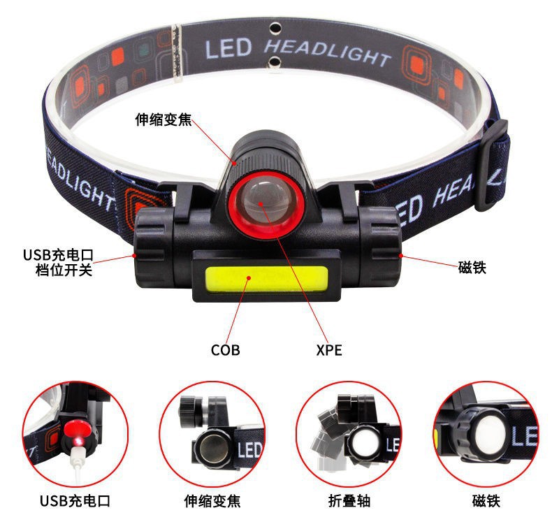 Кросс-бордный магнитный кемпинг-стиль светодиодный налобный фонарь, USB перезаряжаемый фонарь для рыбалки