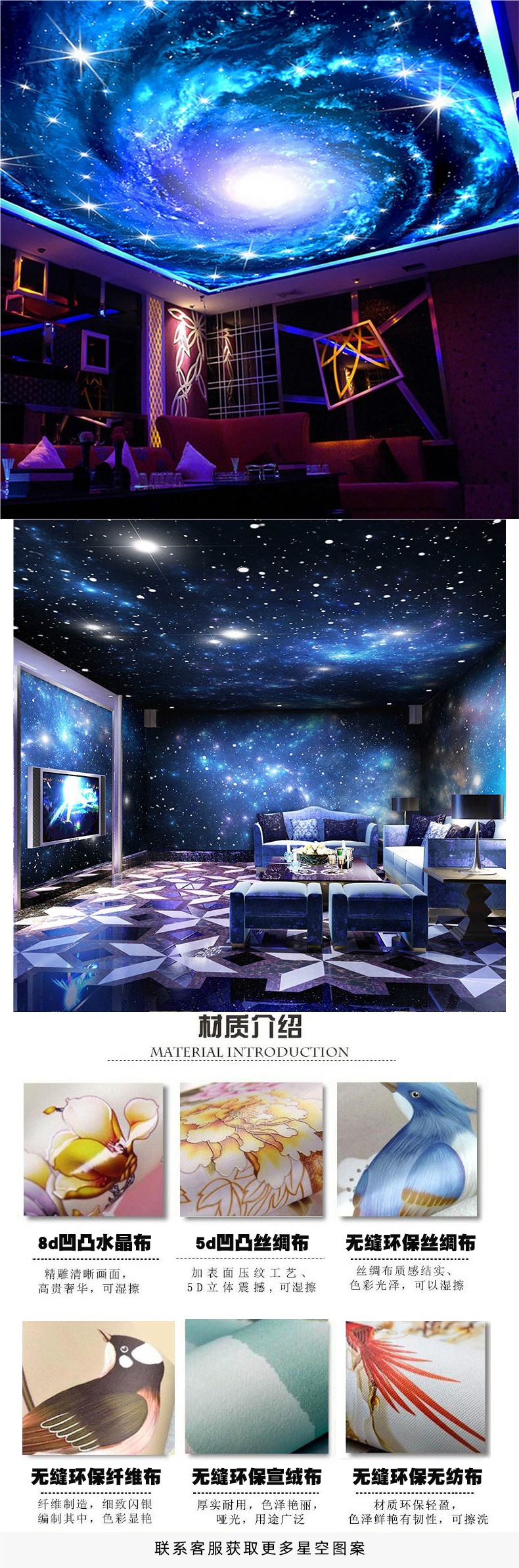 Обои с темой звездного неба, обои для отелей, фон для потолка, роспись для интернет-кафе и KTV