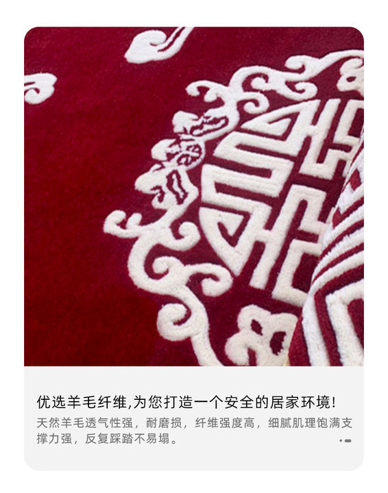 Красный праздничный свадебный ковер для гостиной спальни с открывающимся окном из шерсти и смеси волокон, ручной работы, полный ковер