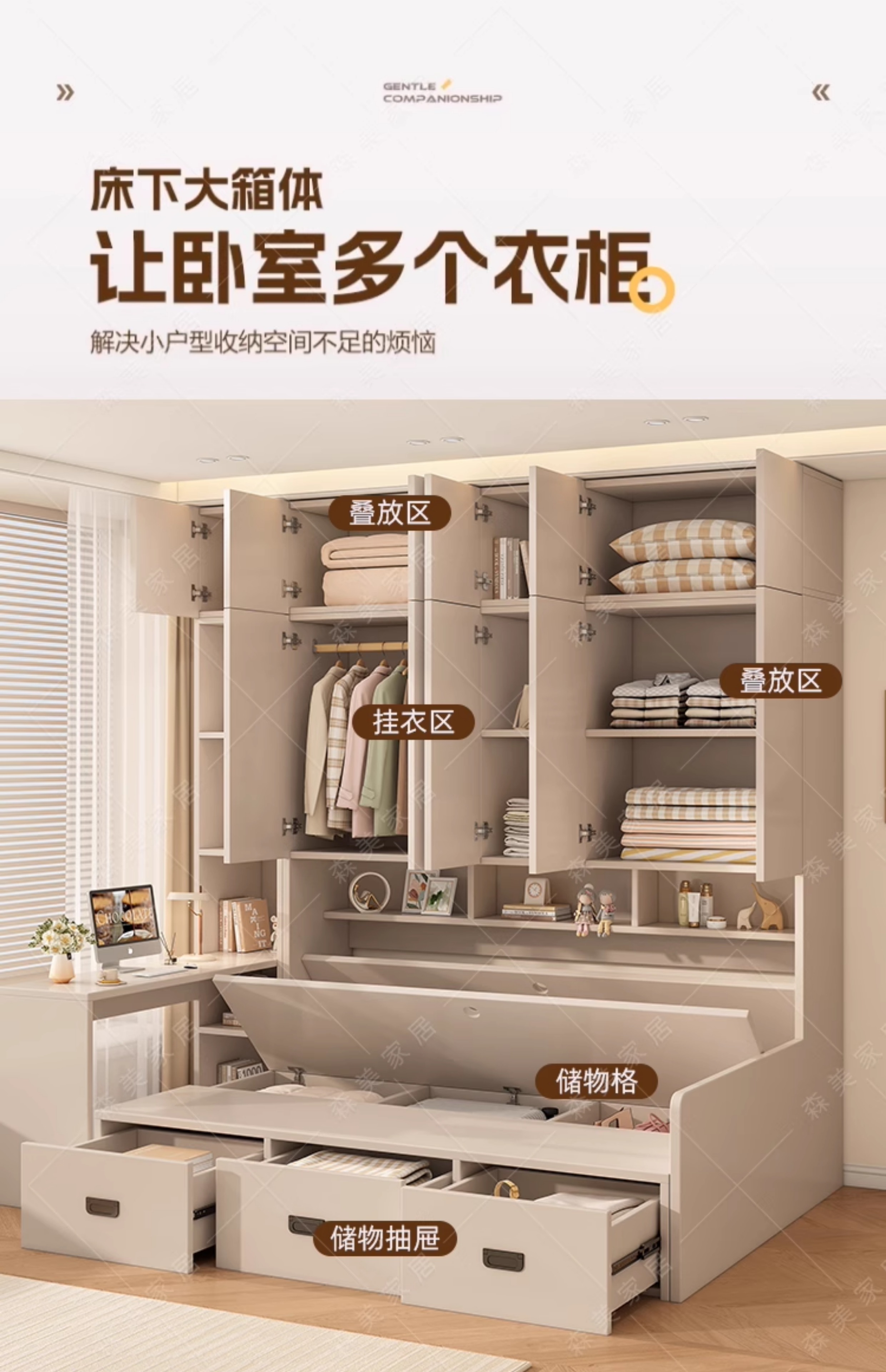 Татами шкаф-кровать с встроенным многофункциональным рабочим столом, комбинация кровати для хранения, маленькая квартира, двуспальная кровать