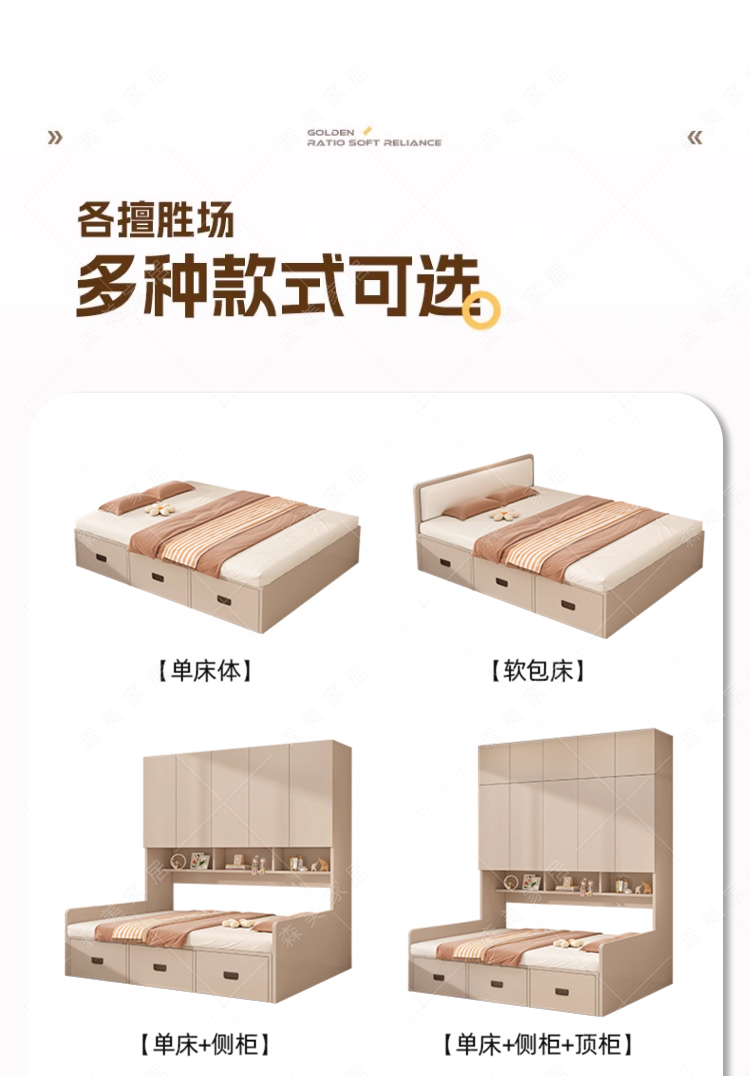 ![]() | [soft bag with built-in handle] cream bed + side cabinet + top cabinet | 1800mm*2000mm | ¥4858.65 / ≈ 58 603 ₽ | 200 | 6153151802470 | |