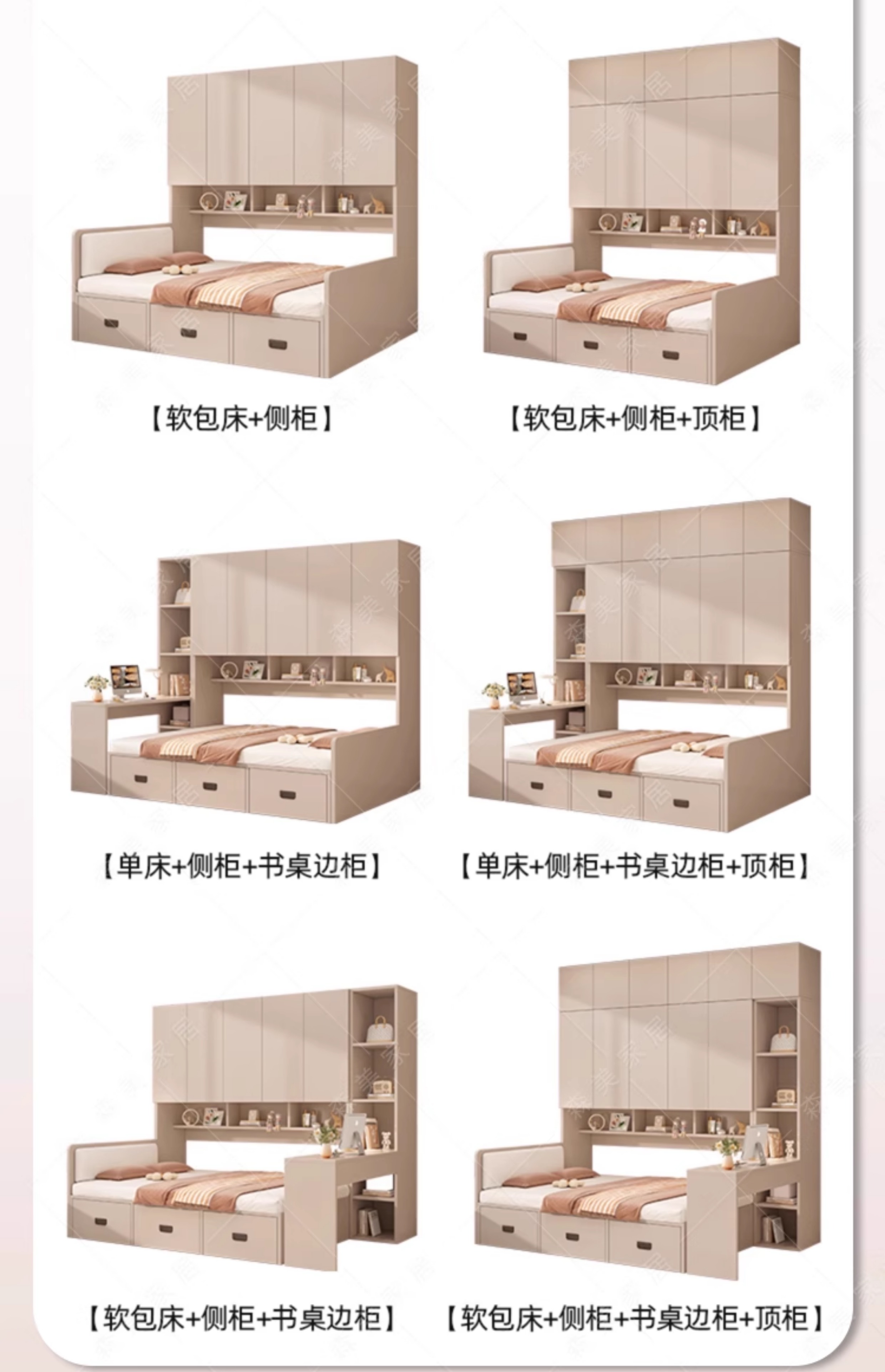 ![]() | [soft bag push door] cream bed + side cabinet + top cabinet + desk | 1200mm*2000mm | ¥4858.65 / ≈ 58 603 ₽ | 200 | 6153151802372 | |