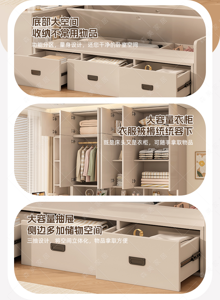 ![]() | [push door] cream bed + side cabinet + top cabinet | 1800mm*2000mm | ¥4318.65 / ≈ 52 090 ₽ | 200 | 6153151802457 | |