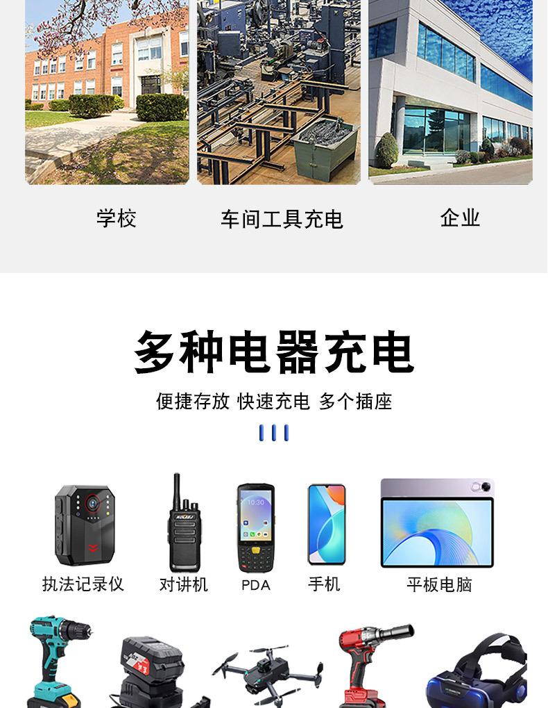 Подходит для инструментов большого пространства, мобильных телефонов, раций, многофункциональных зарядных шкафов, строительных площадок, железнодорожной безопасности