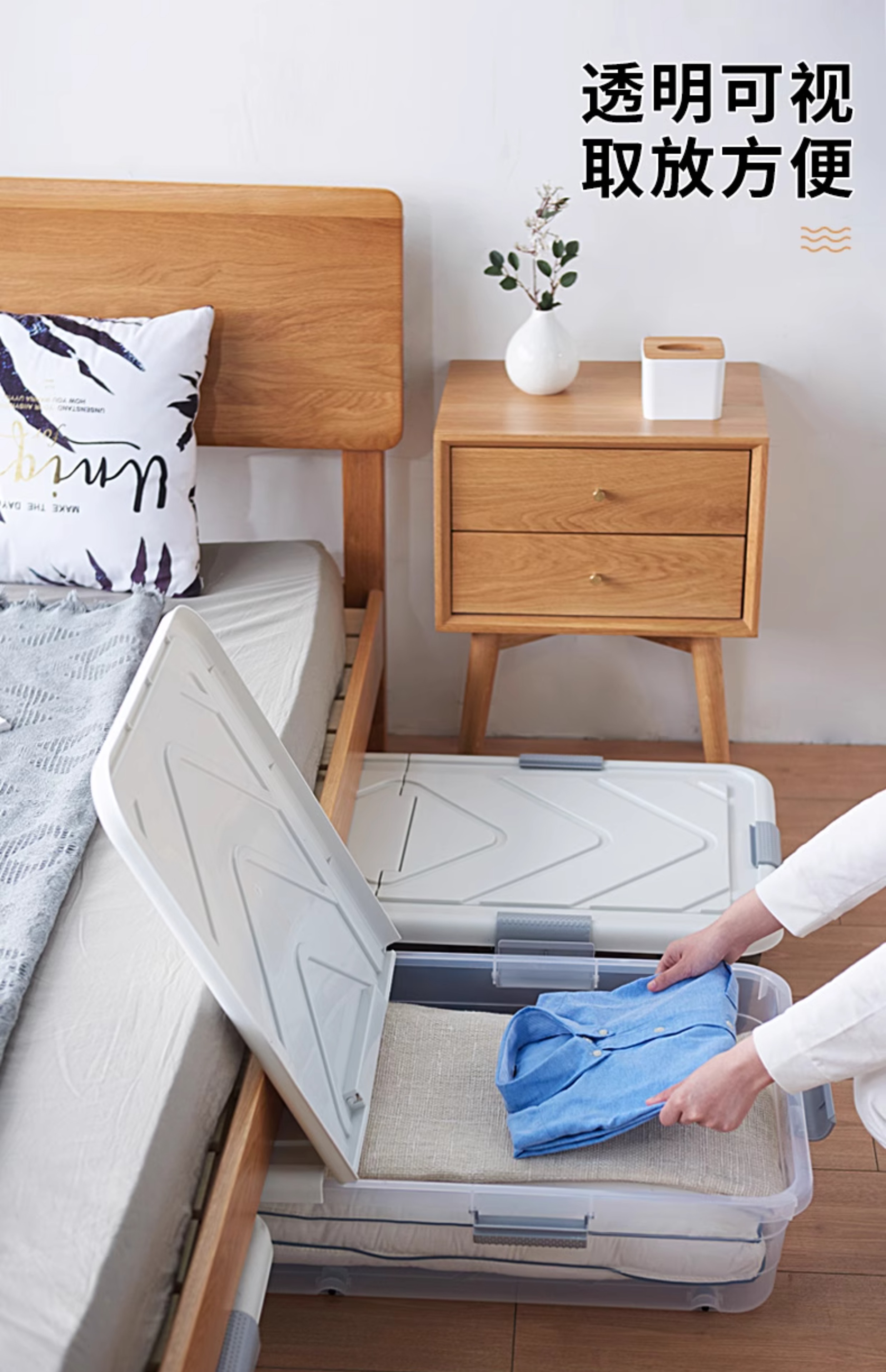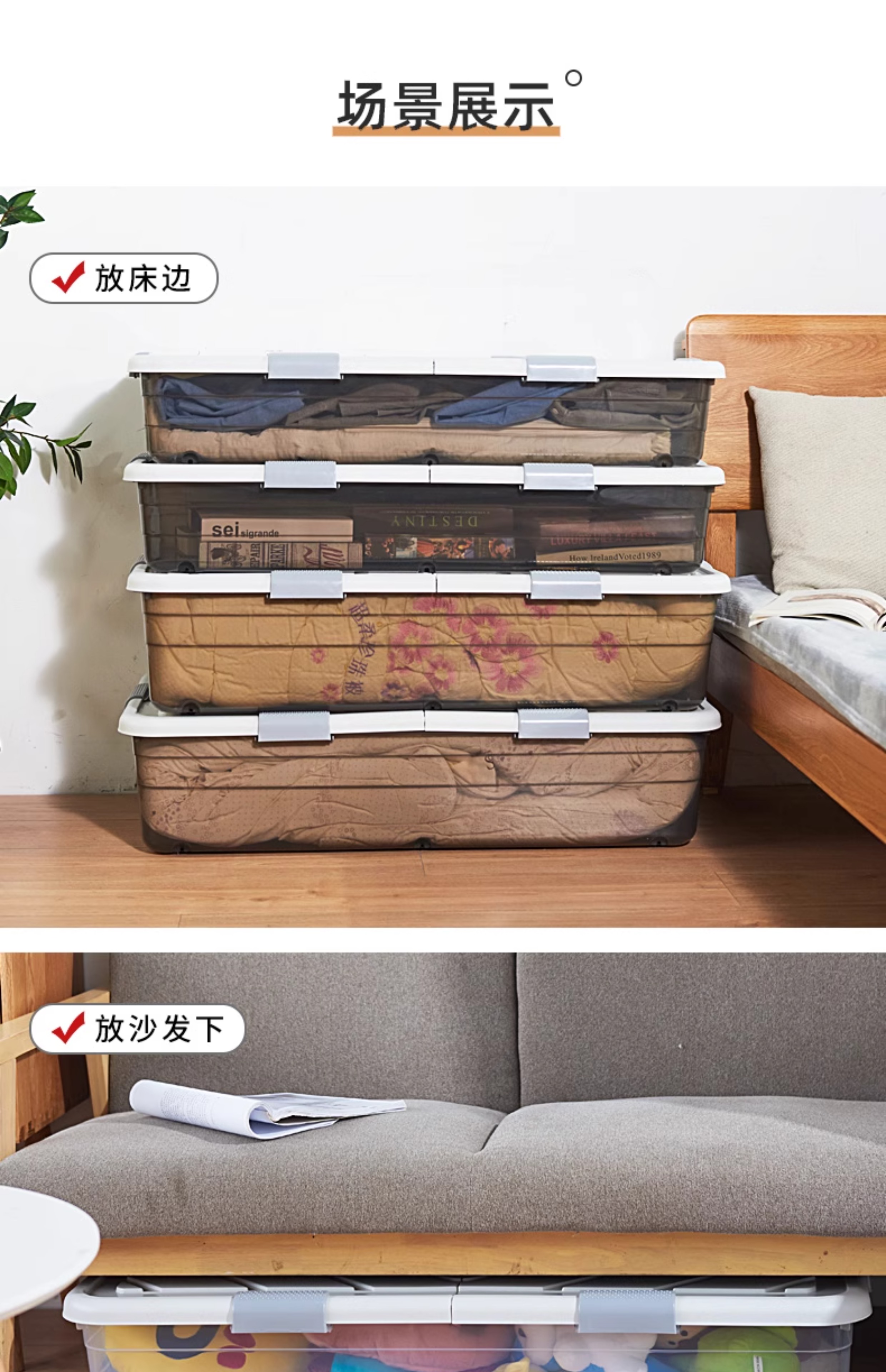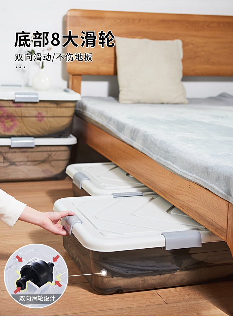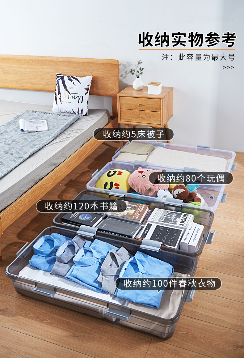 Коробка для хранения под кроватью, плоская пластиковая коробка для одежды и одеял, прозрачная коробка для хранения под диваном