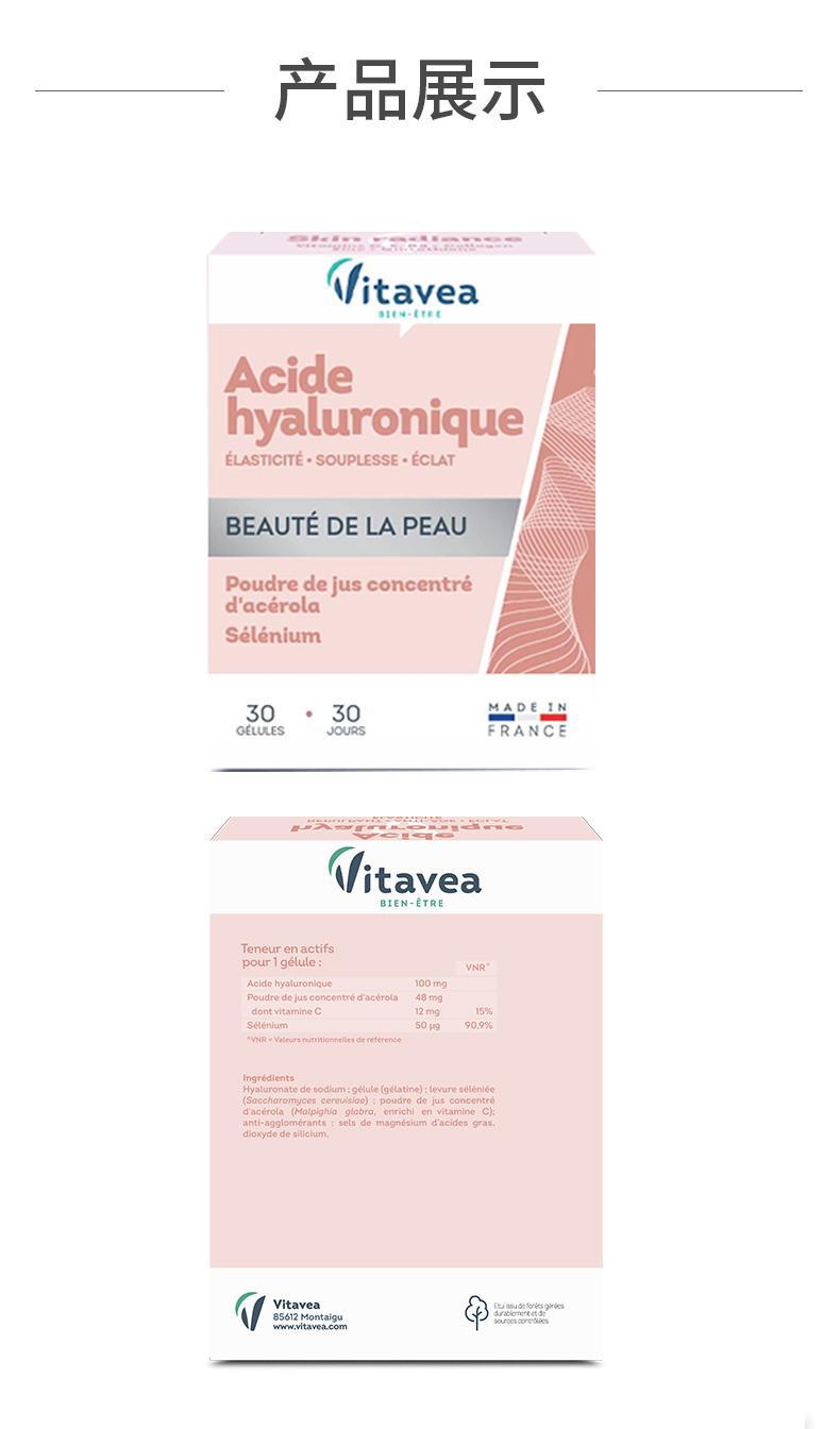 Французские капсулы Vitavea с гиалуроновой кислотой для увлажнения и гидратации 30 капсул