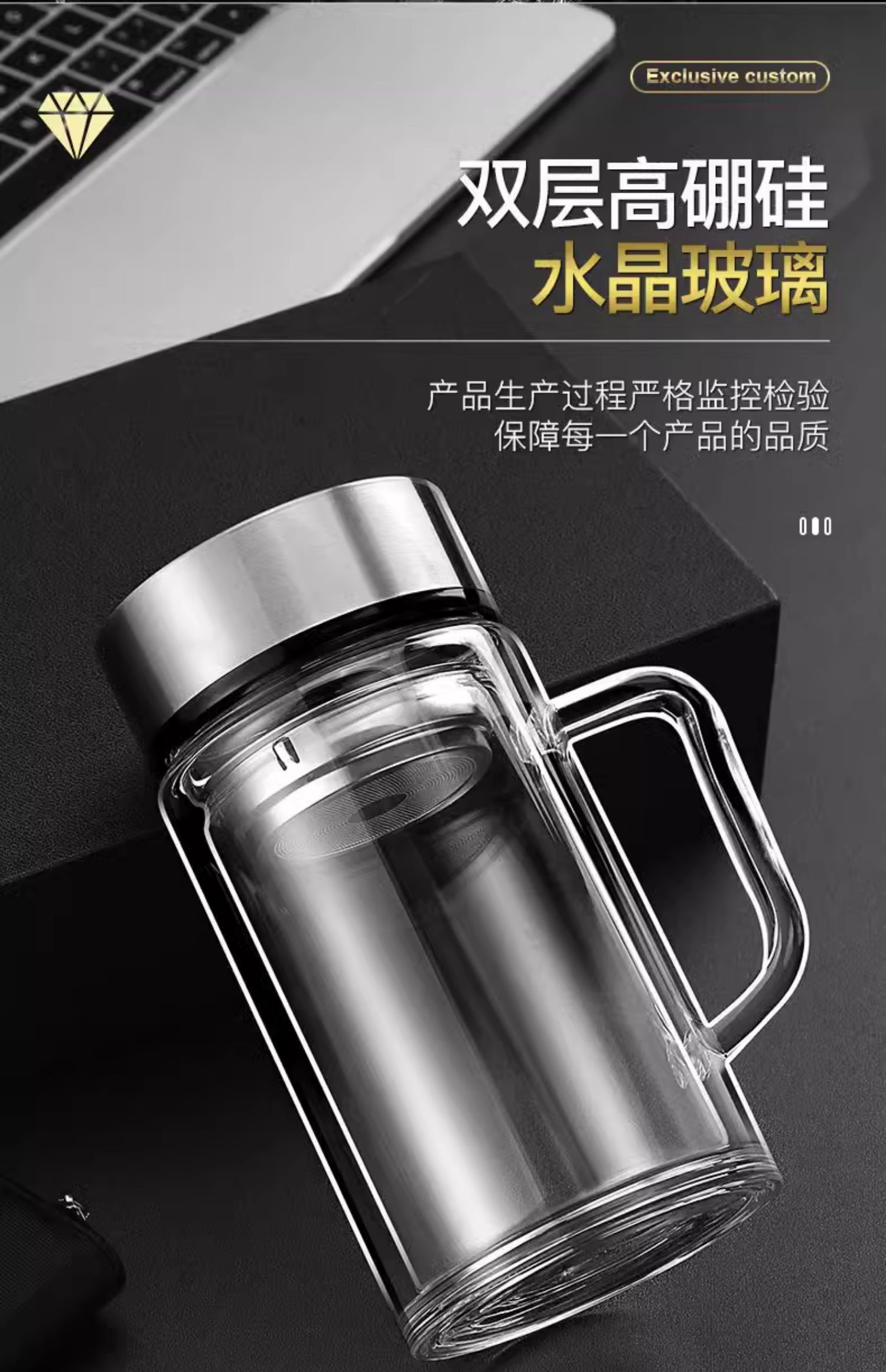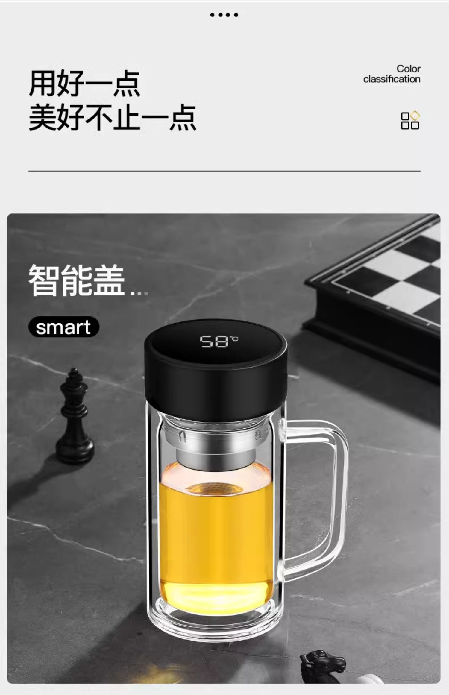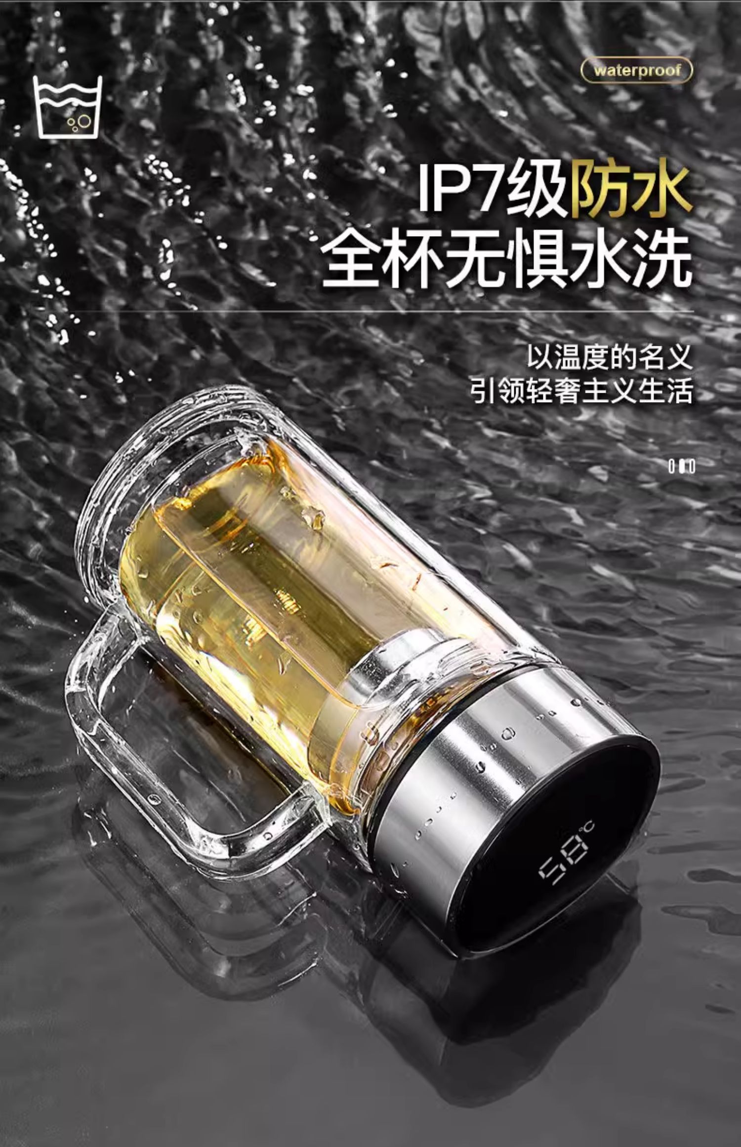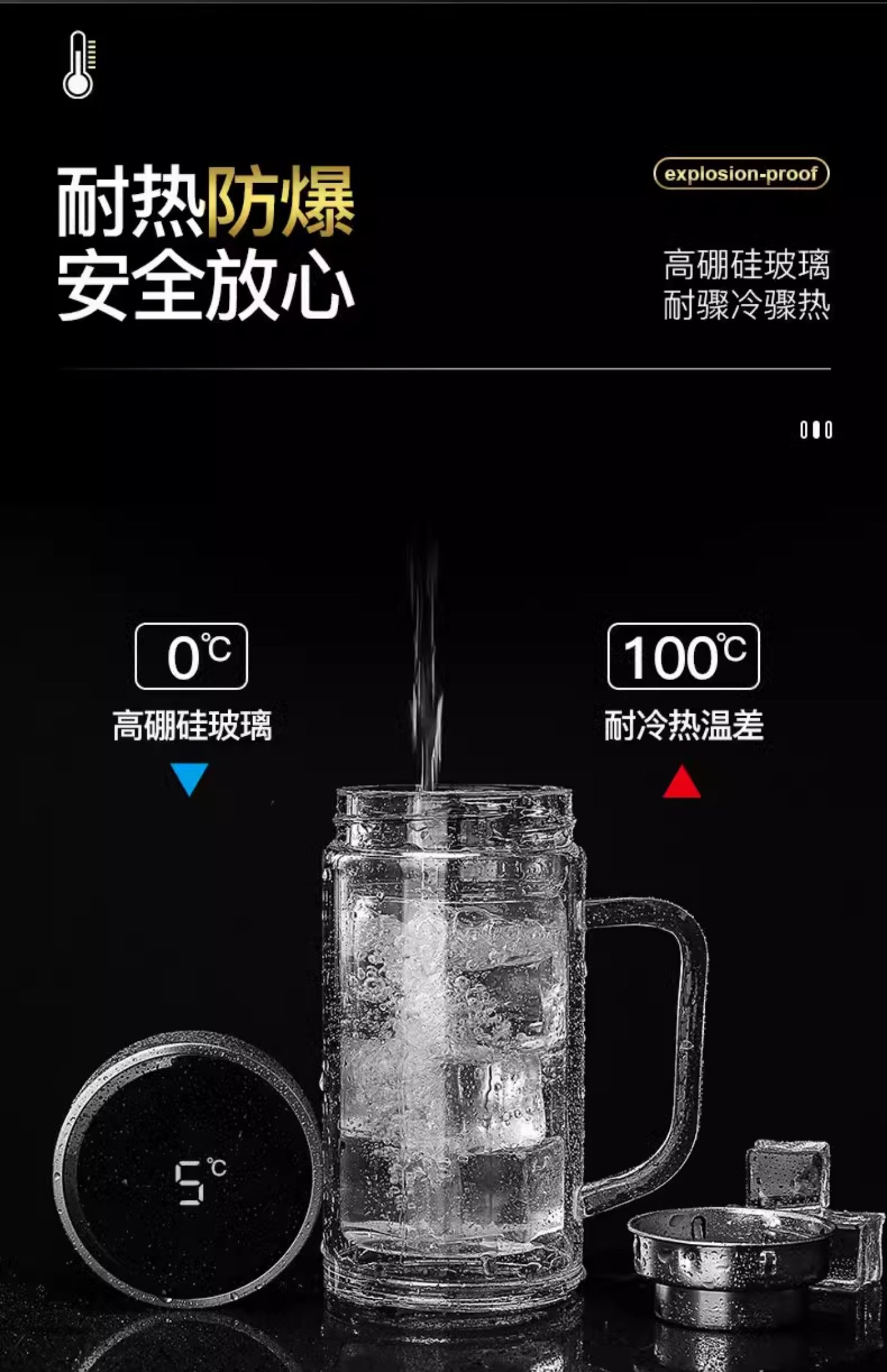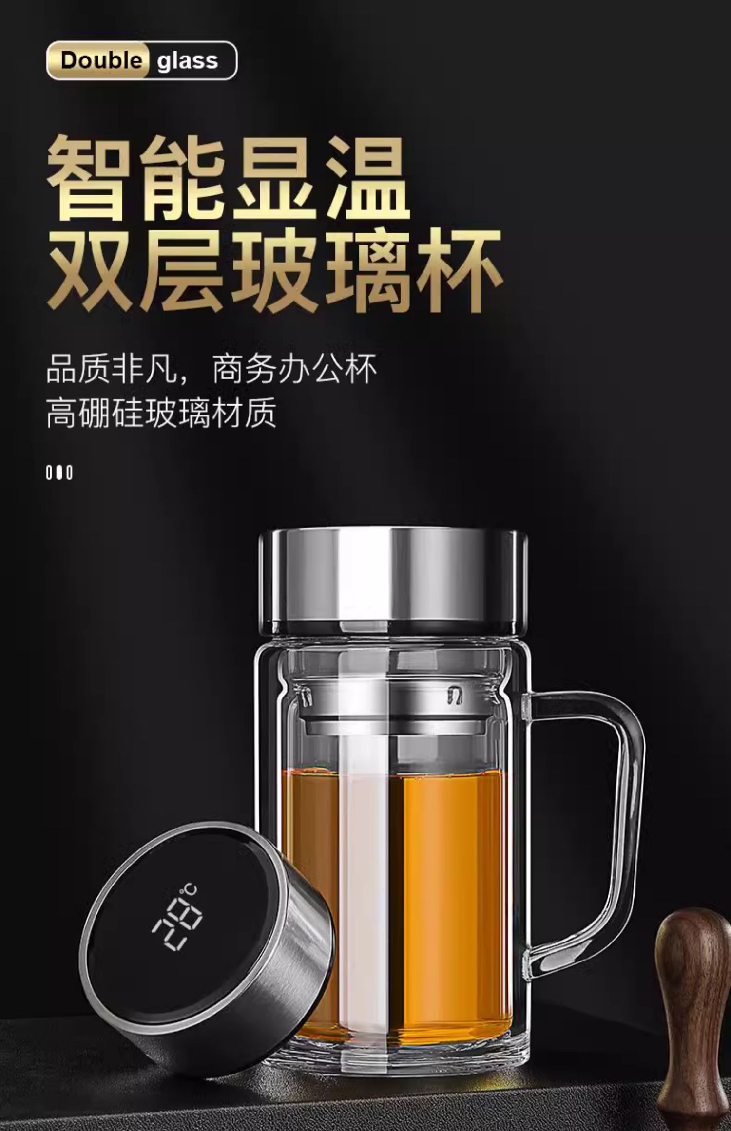 Интеллектуальная Чаша с Дисплеем Температуры Двухслойная Стеклянная Чаша с Ручкой Большой Объем Чайная Чаша для Офиса и Дома с Ручкой