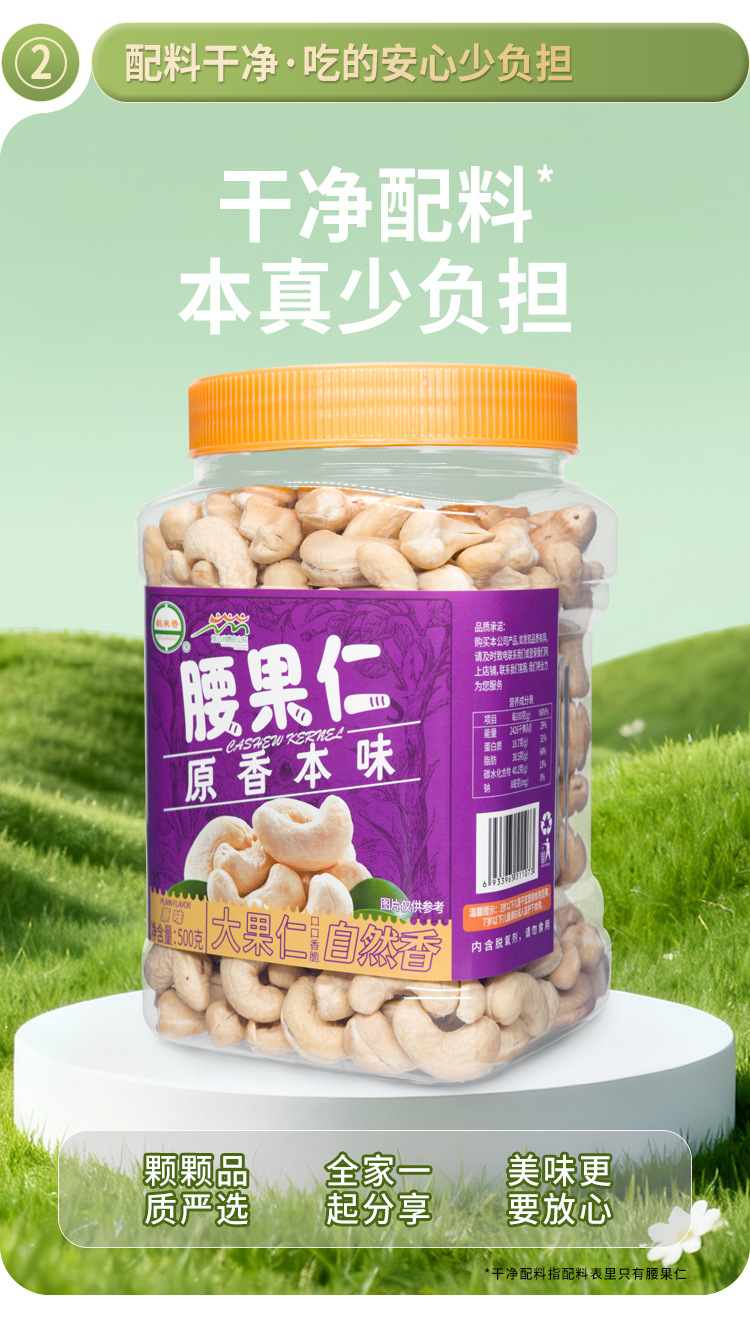 Heliexiang Новинка Оригинальные орехи кешью 500г Экстра большие сырые и жареные очищенные ингредиенты для выпечки Оптовая продажа