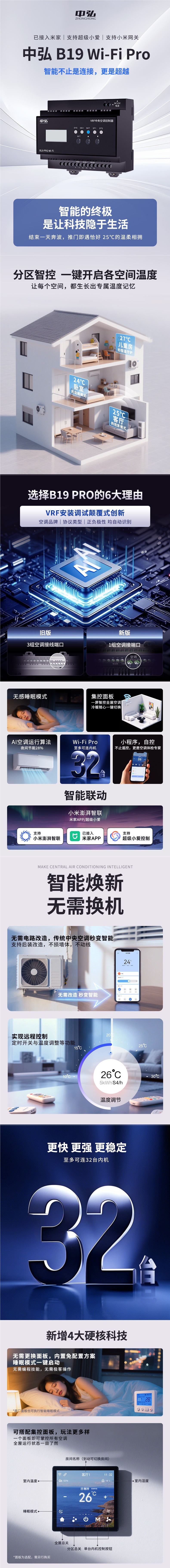 Контроллер центрального кондиционирования Zhonghong Vrf B19Wifi Pro, удаленный контроль, шлюз, подключен к приложению Mijia