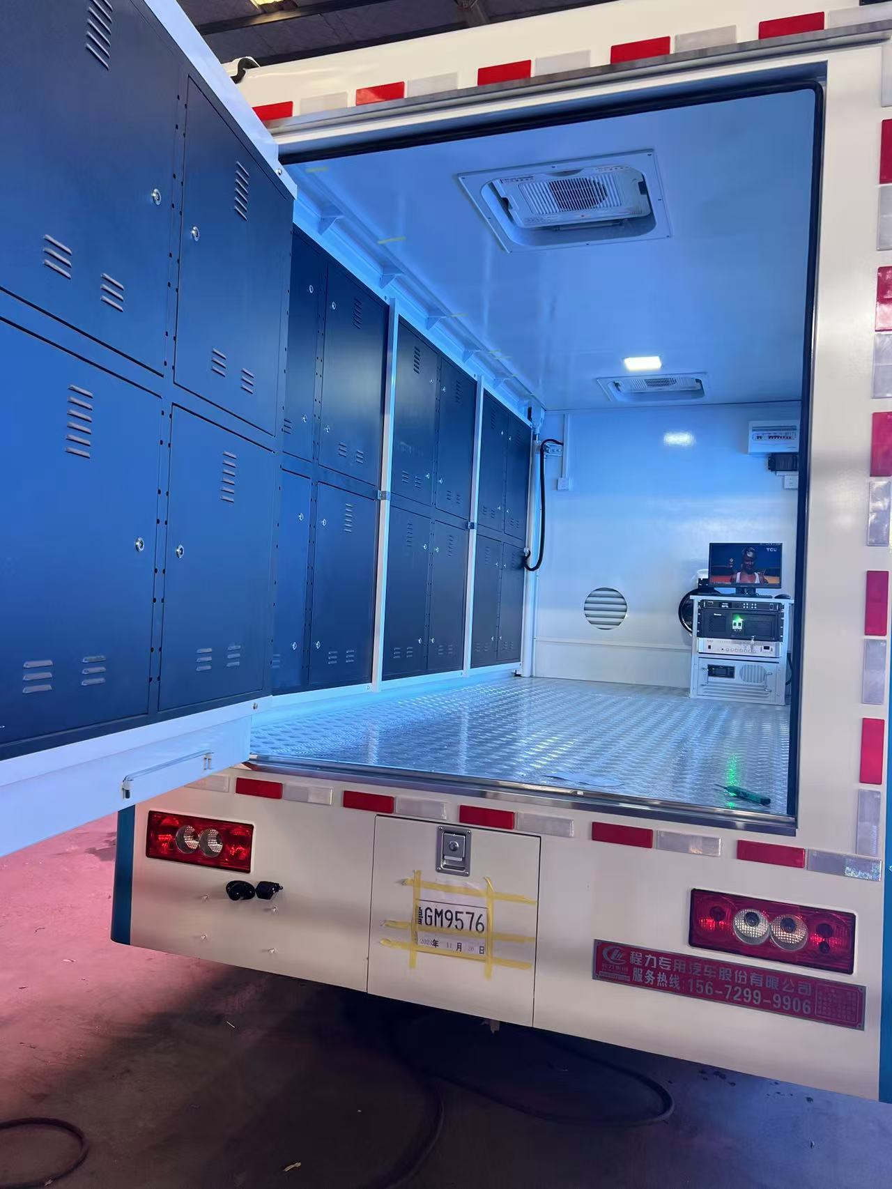 国六解放虎V宣传车:底盘配置:轴距3300mm,全柴120马力发动机,排量2.0L,轮胎7.00R16,其它:带方向助力、空调、电动玻璃、中控锁,断气刹、5挡变速、ABS。上装配置1、【LED显示屏】正驾驶侧为户外彩屏;尾门标配为P10单红字幕屏1280*1440mm。(P6屏尺寸:3840*1728mm;P5/P4屏尺寸:3840*1760mm);2、【滚轴灯箱】副驾驶侧为玻璃滚轴灯箱,可自动循环播放3-5副喷绘布,带LED照明;(选装双面屏时,玻璃滚轴取消);3、【供电系统】内部配欧玛柴油静音发电机1台,功率8KW(选装双面彩屏时,功率15KW);内外网电切换装置,220V市电接口;4、【操作系统】航嘉工控电脑1台,功放1台,立式防水音柱4支;仰邦或卡莱特播放软件;千兆媒体控制、机电一体化控制;5、【通风系统】顶部排气天窗2支,前板百叶窗通风设计,带电动排气扇2支,6、【其它配件】随车配彩屏1块,电源盒1个,排线10根,外接电线30米。选装配置1:屏幕液压举升系统(举升高度1.5米);2:液压红地毯舞台(约9.6平方)(需加屏幕举升功能);3:双面彩屏;4:内部电池组供电。