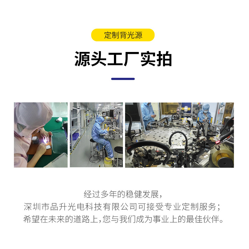 深圳市品升光电科技有限公司专注于光电显示背不产品的研发与制造,主营产品涵盖显示器背光源、LCM模组及LED背光源等,在7英寸以下中小尺寸背光领域具备突出的技术优势与产能保障。